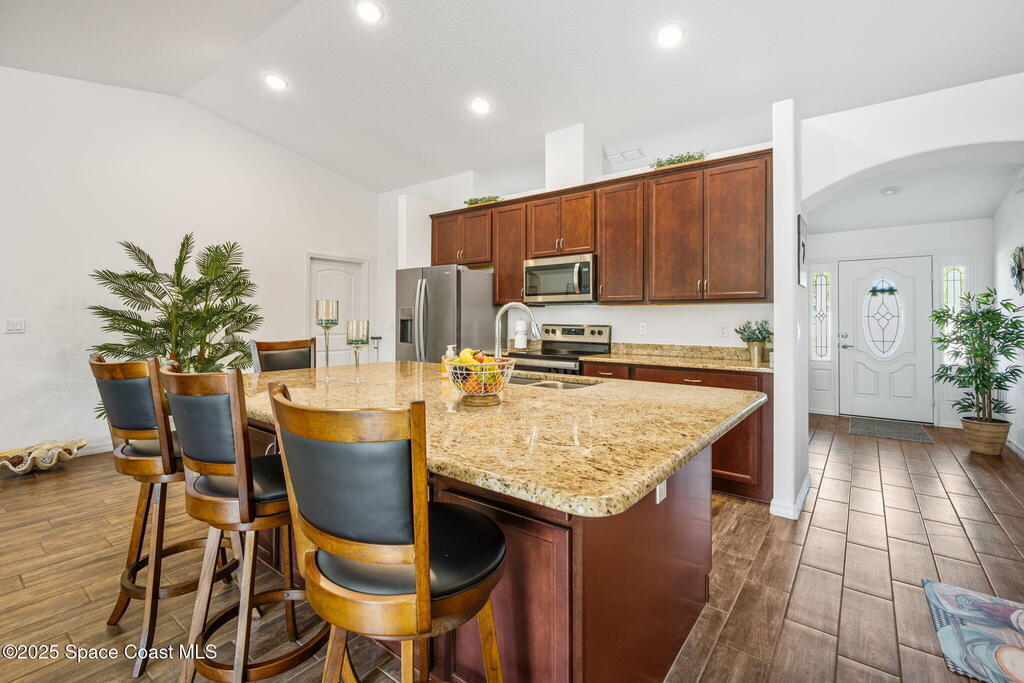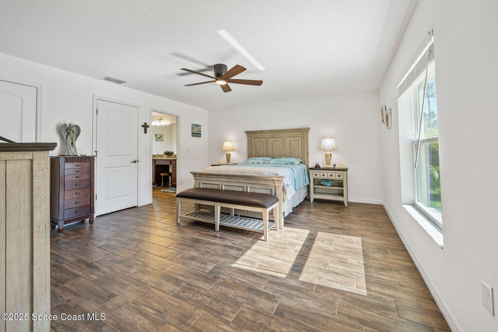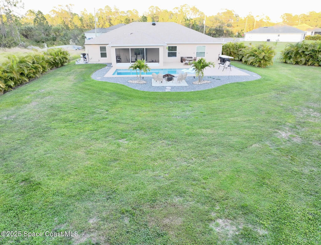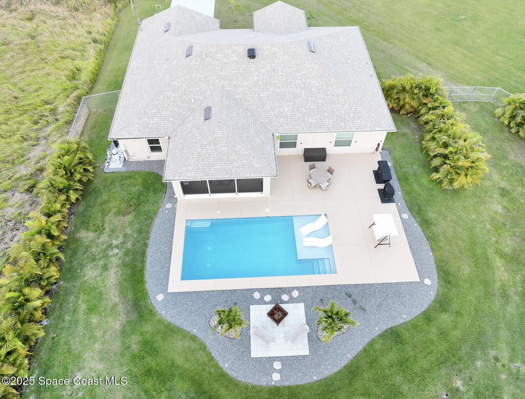 Welcome to the one you've been waiting for. This stunning 3-year-new custom home sits on an oversized .4-acre lot with no HOA--bring your RV, boat, and all the toys with ease thanks to a convenient double-wide gate. Step into your own private, resort-style oasis featuring a heated saltwater pool, extended pool deck, lush Areca palms for total privacy, a covered screened porch, cabana bath, and a concrete fire pit area perfect for entertaining or unwinding under the stars. Inside, the open-concept design impresses with vaulted ceilings, tile flooring throughout, recessed lighting, and stylish fixtures. The chef's kitchen boasts a large storage-rich island, 42'' cabinetry, granite countertops, stainless steel appliances, and a massive walk-in pantry. The luxurious primary suite offers a spa-like bath with dual vanities, tiled walk-in shower, soaking tub, and an oversized walk-in closet. Thoughtful upgrades include a hybrid water heater, attic fan, rain gutters, and A/C in the garage.