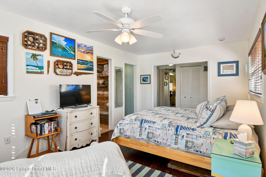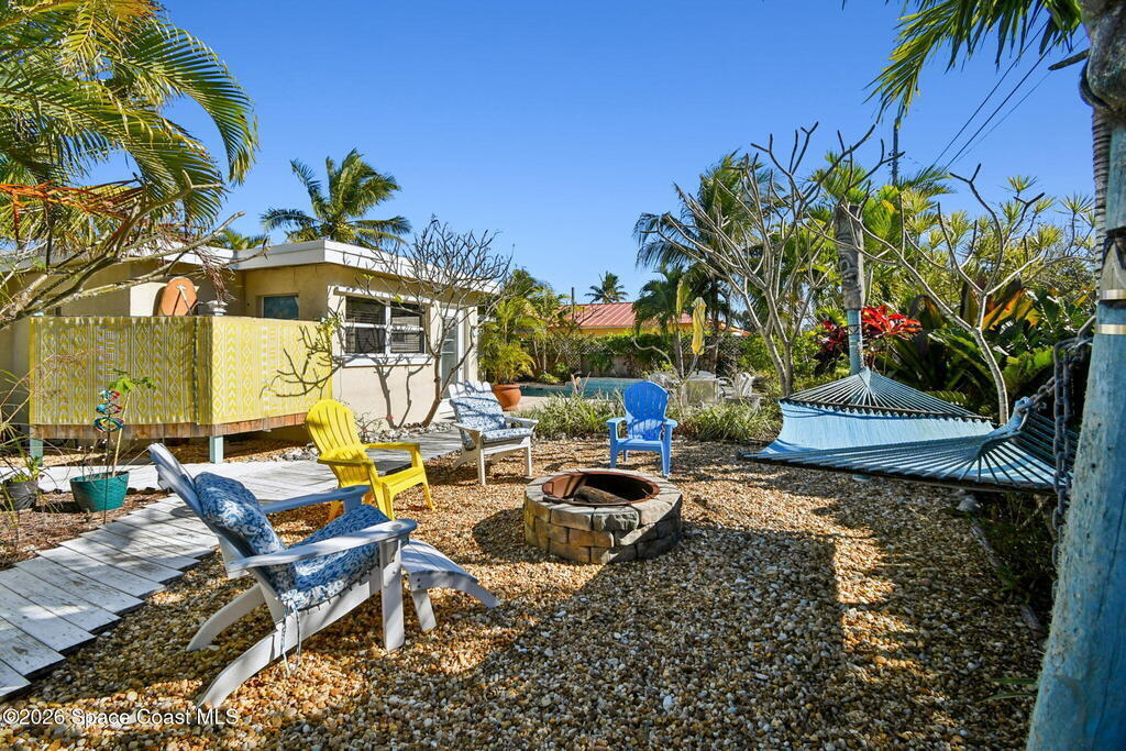 Located just minutes from the ocean, this beautifully updated 3-bedroom, 2-bath Satellite Beach pool home captures the best of relaxed coastal living with exceptional versatility. Major upgrades include a new roof, re-pipe plumbing, newer HVAC, newer washerThe spacious primary suite is ideal as a private in-law retreat, featuring a walk-in shower, kitchenette with refrigerator and microwave, king-size sleeping area, closet, and private rear entrance.The backyard is a true island oasis with an inground pool, fire pit, outdoor shower, and lush tropical landscaping accented by fruit trees, gardenias, and night-blooming jasmine--perfect after a beach day. Inside, enjoy an updated kitchen with white quartz countertops, stainless steel appliances, and modern finishes.A charming she-shed for hobbies, plus additional storage for gardening and equipment, add flexibility and function. The tropical front yard offers standout curb appeal. Ideal as a full-time residence, multi-generation!