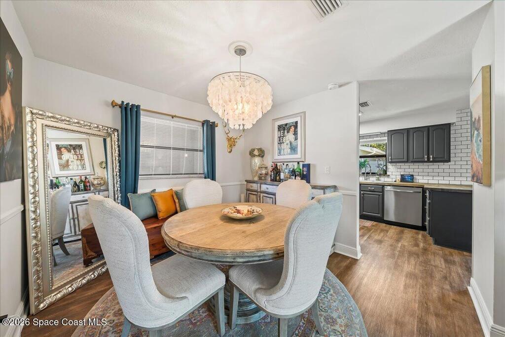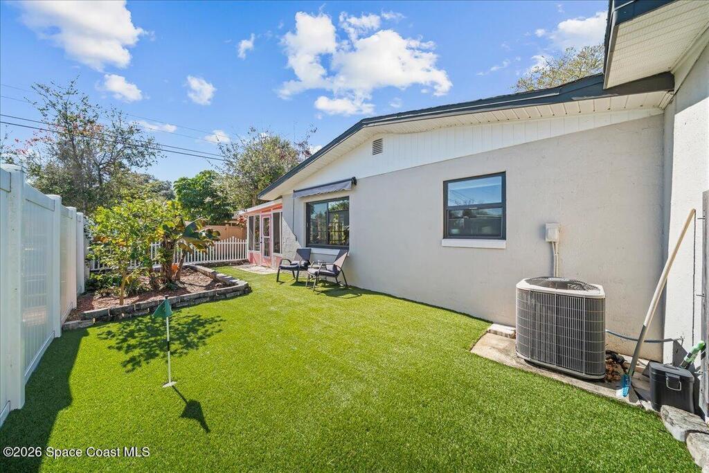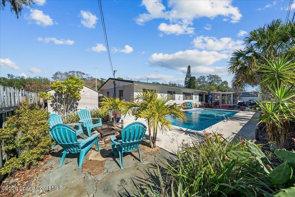 Welcome home to this charming 4-bedroom, 2-bath retreat that welcomes you with a warm, inviting feeling the moment you step inside. Thoughtfully updated, this home features new flooring throughout, updated bathrooms, and modern lighting fixtures, along with a freshly painted exterior for excellent curb appeal.Located in a quiet neighborhood with no HOA, the home offers both comfort and flexibility. The backyard oasis is perfect for Florida living, featuring a recently resurfaced pool, spacious patio, artificial turf with a putting green, and fruit trees, ideal for entertaining or unwinding outdoors.Situated in Titusville, you're close to the Indian River, scenic bike and walking trails, kayaking, fishing, marina, and some of the area's best nature views. As an added bonus, enjoy front-row views of rocket launches right from your own backyard...an experience truly unique to the Space Coast.This home perfectly blends charm, updates, and an active outdoor lifestyle.