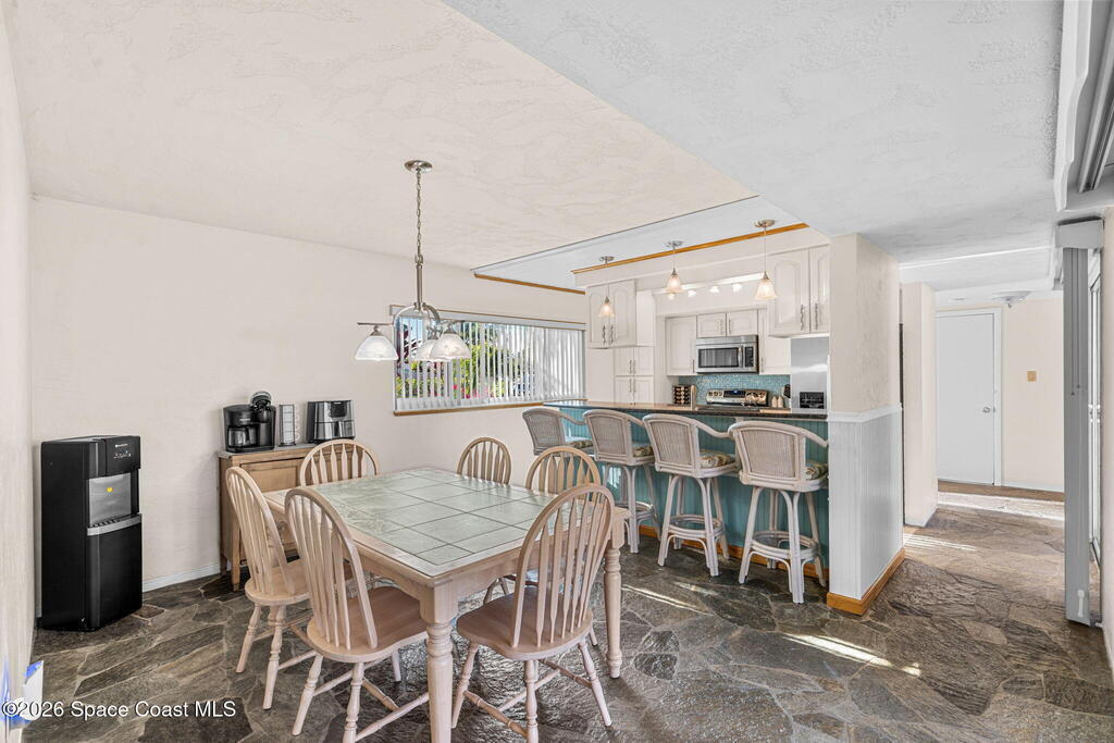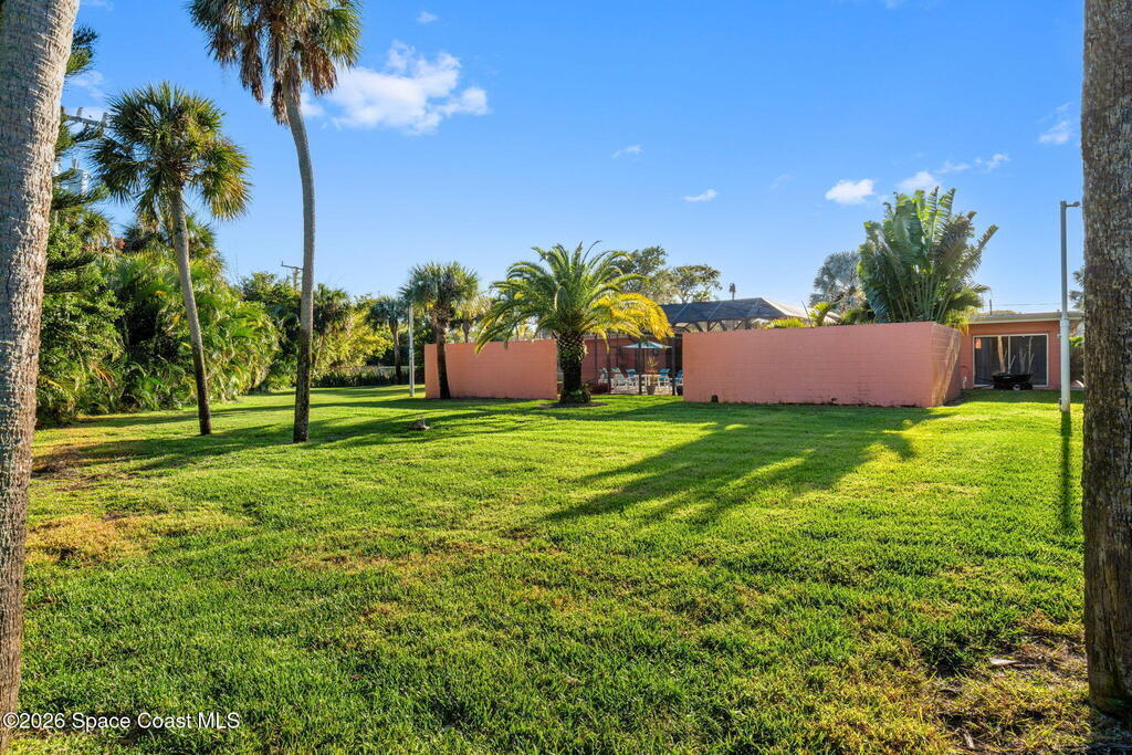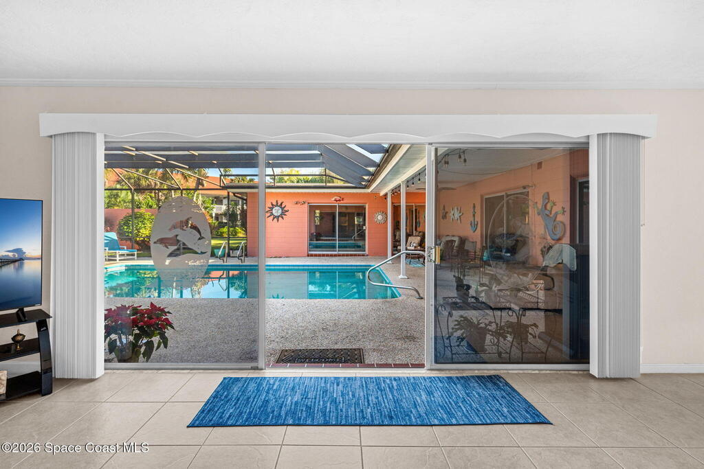 Welcome to your private coastal retreat in the heart of Cocoa Beach where luxury, privacy, and the ocean lifestyle come together on nearly half an acre of paradise. Step into a backyard designed for resort-style living. A large screened-in pool and spa create your own personal oasis, perfect for relaxing, entertaining, and enjoying Florida's endless sunshine. From here, a private gated fence opens to a walking path that leads to the beach -- less then a five-minute stroll from your backyard to the sand, offering the rare luxury of direct, convenient beach access. Inside, the home opens into a light-filled great room centered around an electric heated fireplace, creating a warm, inviting space that flows seamlessly into the kitchen and primary suite -- all with beautiful views of the pool.