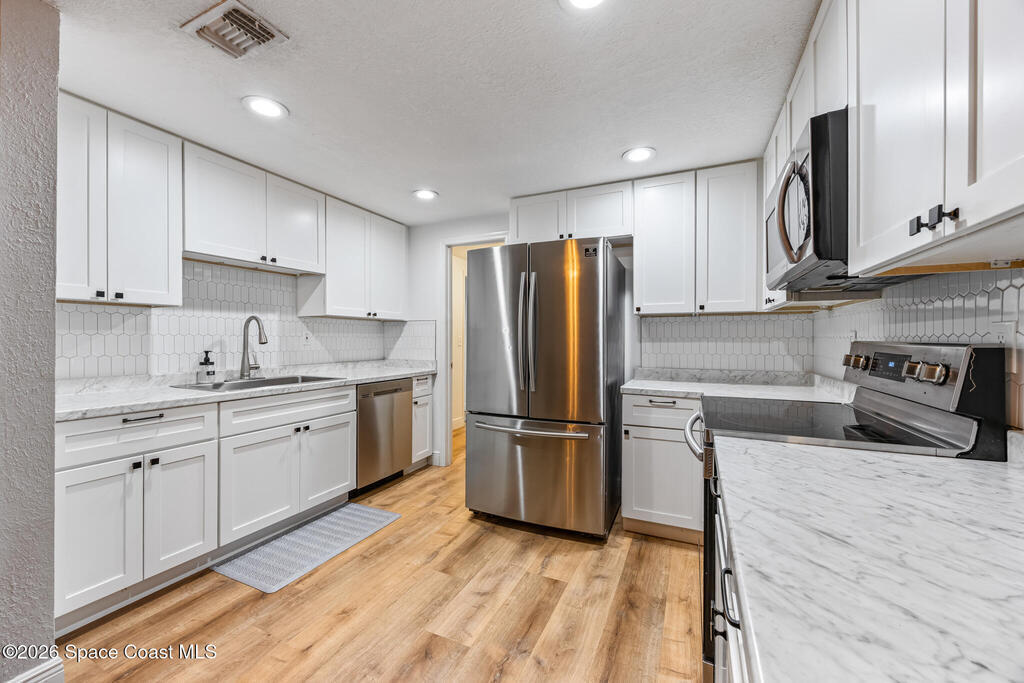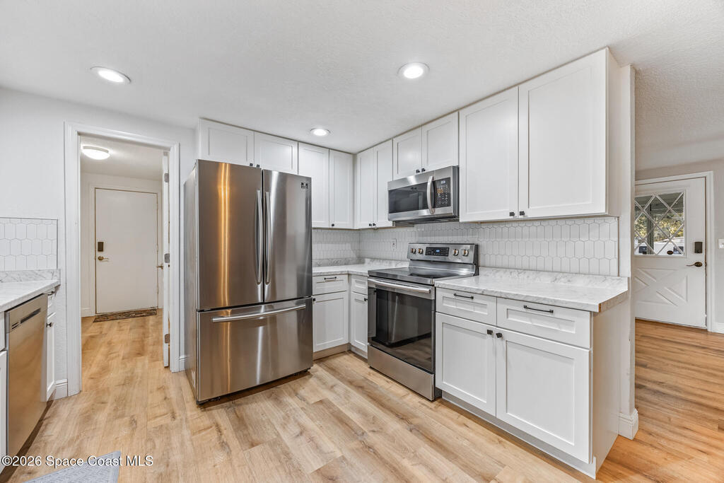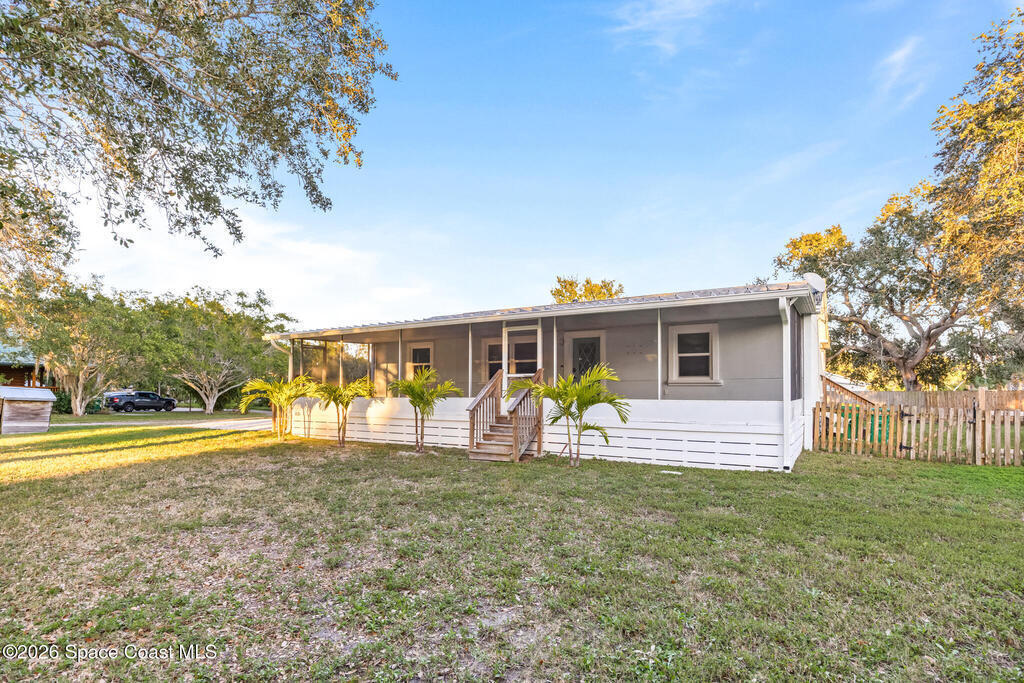 Tucked just off the beaten path under mature oaks, you'll find this adorable, Merritt Island gem. Sitting on .3 of an acre, this home feels cozy, inviting, and full of charm. A large, screened porch sets the tone for long conversations and quiet moments - perfect for rocking chairs & listening to the sounds of nature as the sun rises or the cicadas hum. Inside you'll find four bedrooms, offering flexibility for family, guests, or a home office. The kitchen has been tastefully upgraded to feel light and cheerful, boasting stainless steel appliances and plenty of space to gather. An updated primary suite adds a fresh, modern touch while still blending beautifully with the home's relaxed character.