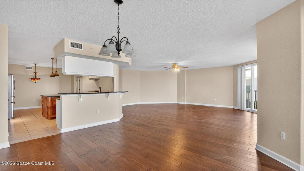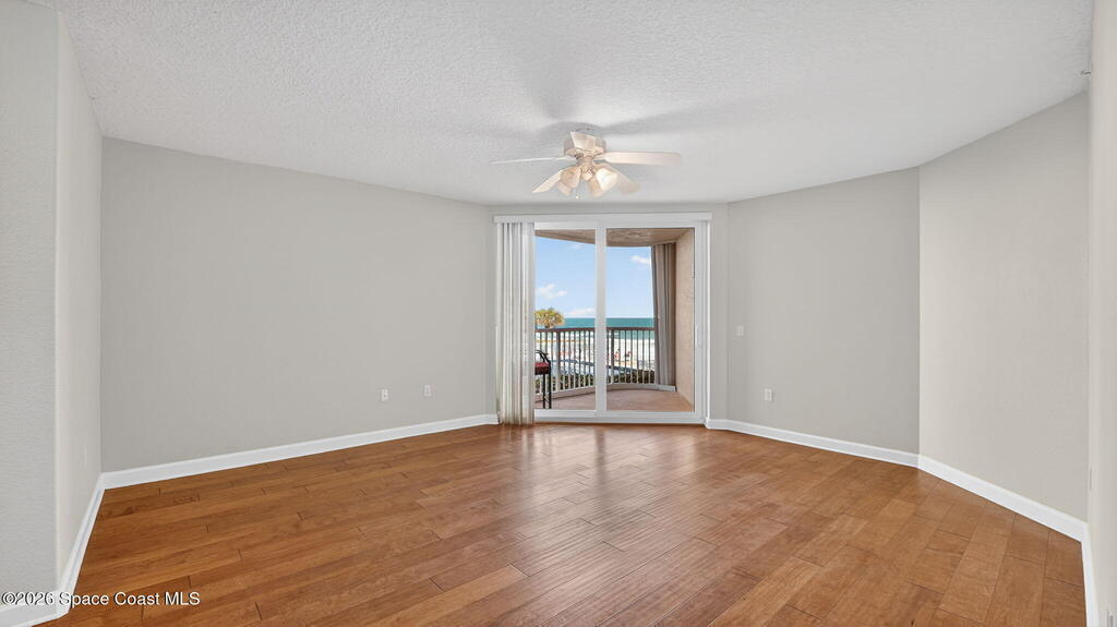 Imagine owning an oceanfront condo where the beach is just steps away and the view is part of daily life. This three‑bedroom plus den (or 4th bedroom), three‑bath residence offers direct ocean views from the living room, perfect for watching waves or sunrise. The kitchen and main walkways feature 18-inch tile for a clean, low‑maintenance feel, while the dining room, living room, and primary bedroom include wood‑look tile for warmth and a modern, cohesive look. The primary bedroom provides comfort, privacy, and easy access to the main living areas. With a flexible layout and well‑designed bathrooms, the space works beautifully for family or guests. Step outside to the sand or relax indoors with the ocean as your backdrop--this condo blends location, practicality, and coastal living effortlessly.