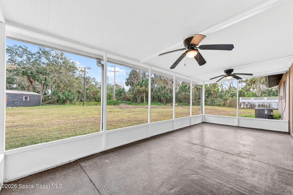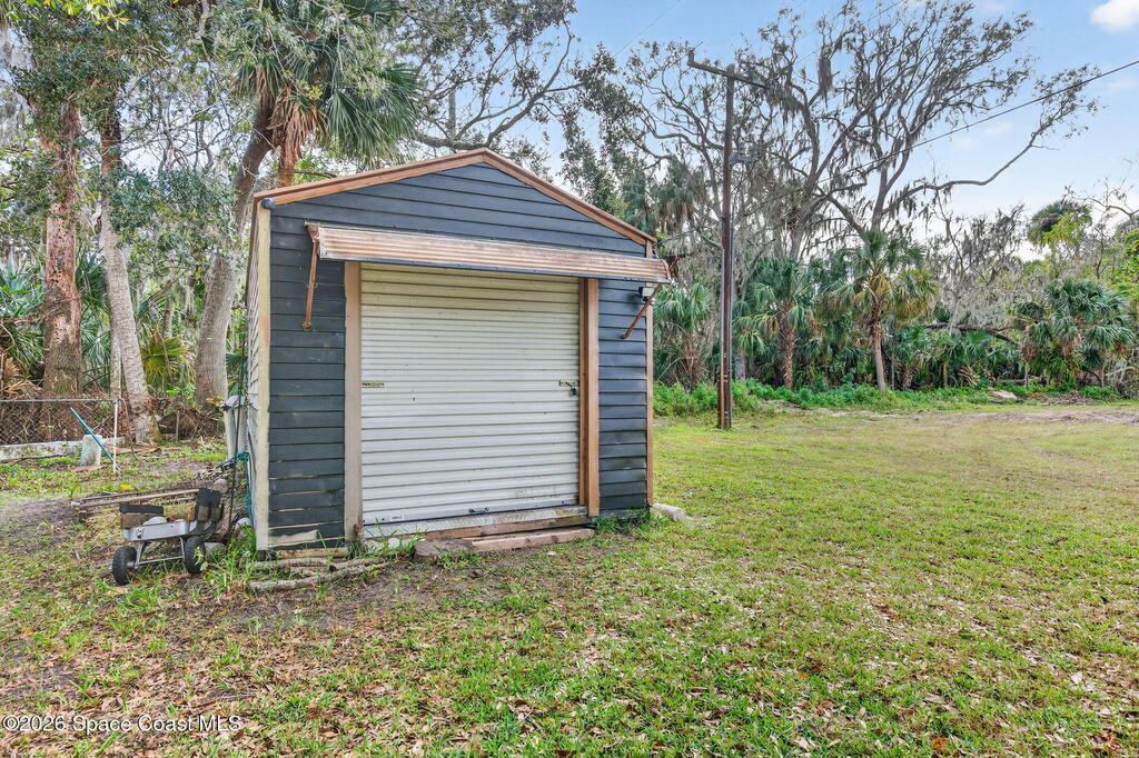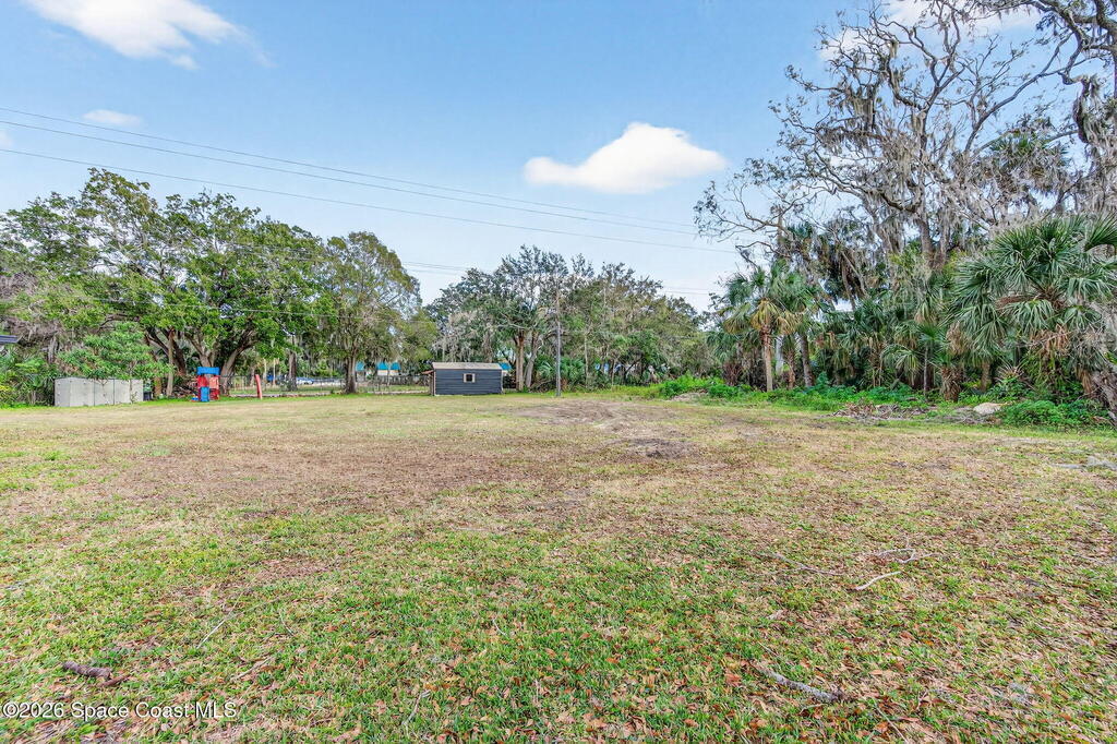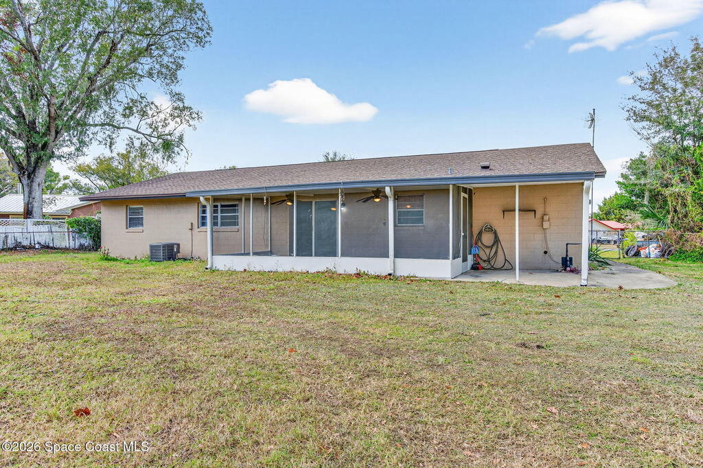 Welcome to this 3 bdrm 2 bath neat clean home w/ an oversize 2 car garage located on almost a third of an acre at the end of quiet dead end street in a cul-de sac. Improvements include new roof shingles in 2020, new HVAC and air ducts in 2021 plus an updated top-tier Cultler Hammer electrical panel, newer hot water heater & all new interior paint on walls, ceilings, doors & trim. The kitchen has also been updated with newer kitchen cabinets & stainless appliances. There is an inside utility room that includes a washer & dryer & a small freezer. The 500 sq ft garage has built-in cabinets & a refrigerator to hold your cold drinks. A 10 x 24 screen porch overlooks a private & expansive back yard with no back yard neighbors. Its a great place for your toys & pets & comes w/ 2 storage sheds near the back of the property w/ no home owner association. No carpet to mess up either!Great starter home just waiting for you in a very nice well maintained neighborhood in central Titusville.