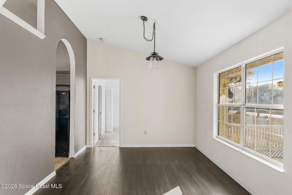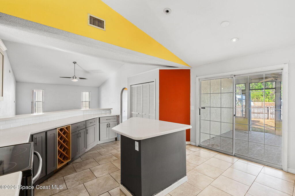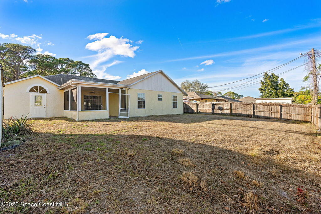 Bank-owned opportunity in NW Palm Bay! This home features vaulted ceilings and a spacious open layout with a large kitchen and living room, plus a separate dining room ideal for everyday living or entertaining. The split bedroom floor plan offers added privacy, while the expansive fenced backyard includes a huge shed for extra storage or workshop space. Notable features include a 2005 roof and 2005 A/C. Conveniently located with easy access to schools, shopping, and major roadways. A great opportunity for buyers or investors--schedule your showing today! This property is being sold as-is, property is lender -owned and U.S. Bank National Association is making no representations or warranties.