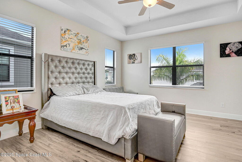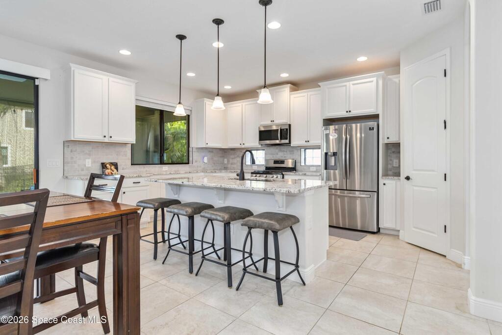 **LUXURIOUS HOME** available for sale in West Viera's Sierra Cove! 4 Bedrooms, 3 1/2 Baths and extended 2-car garage. UPGRADES throughout whole home, including tile floors downstairs and vinyl plank flooring upstairs. Inspirational entryway with high ceilings, a formal foyer and flex room. Spacious great room connects to a dining area and kitchen, making it great for entertaining. The Kitchen features designer quartz countertops, backsplash, a large island, gas range, stainless steel appliances, pantry, and separate butler's pantry. Oversized Master Suite with his/hers closets a Master bath with a large walk-in shower, soaking tub and double vanities. Large front yard and front porch with rocket launch views. Back yard is completely fenced-in with an expansive screened-in lanai. Addison Village Clubhouse features resort-style amenities, tennis courts, pickleball, and regularly-scheduled events. Close to shopping, restaurants, golf and beaches.