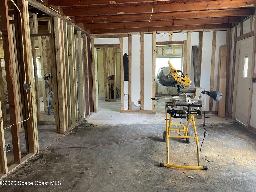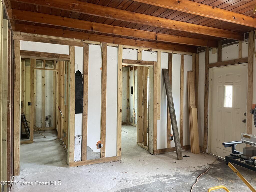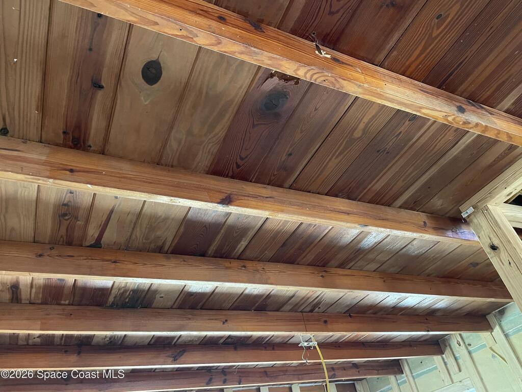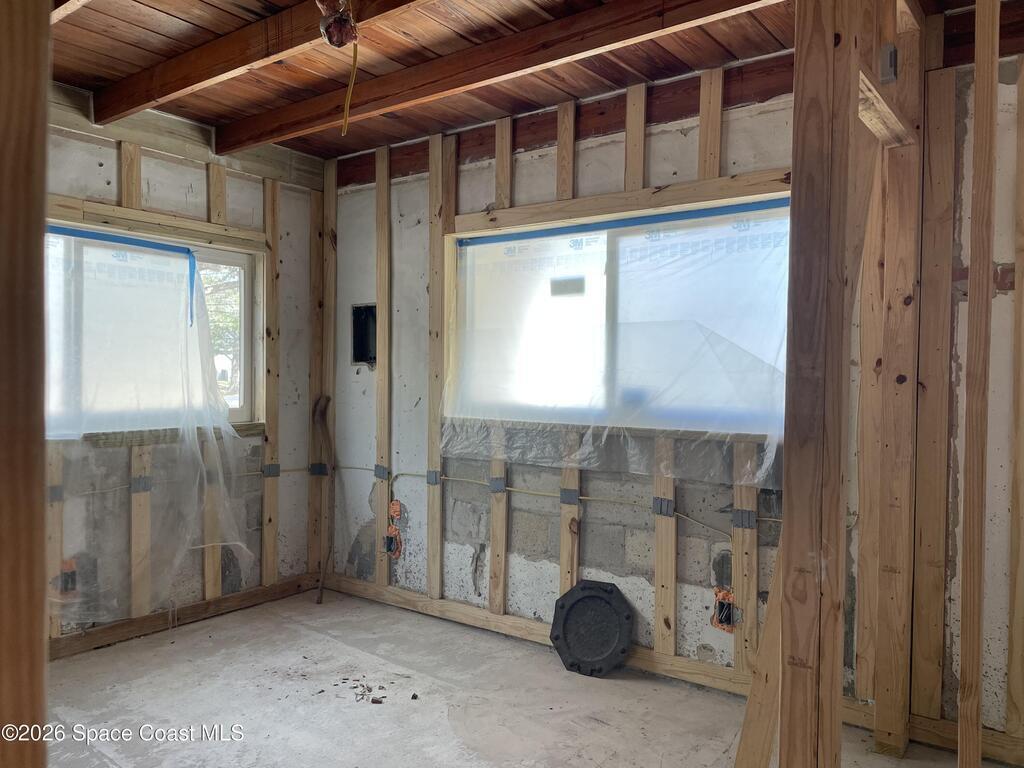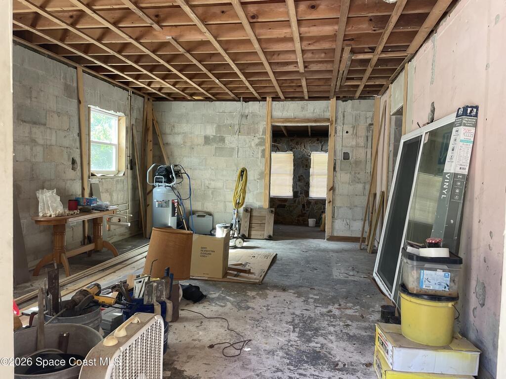 Own a piece of the quiet and tranquility of June Park. This Old Florida renovation is nearly complete waiting for the finish work that makes it really personal. The Coquina Rock Facade is original. 6 inches of rock has been laid to prep the driveway for pavers. The Standing Seam Steel Roof will weather the storm along with impact windows and all concrete construction. Professional, permitted construction. No sagging floors here as they are concrete slab. All new plumbing and electric work with licensed contractor. Extensive footing reinforcement has been done in preparation of large porch addition on back of home. .Stunning original features include beautiful wood coffered ceilings and a working brick fireplace. Built on flat lot with a raised slab to stay dry in tropical rains. There is so much potential in this solid, beautiful custom home.