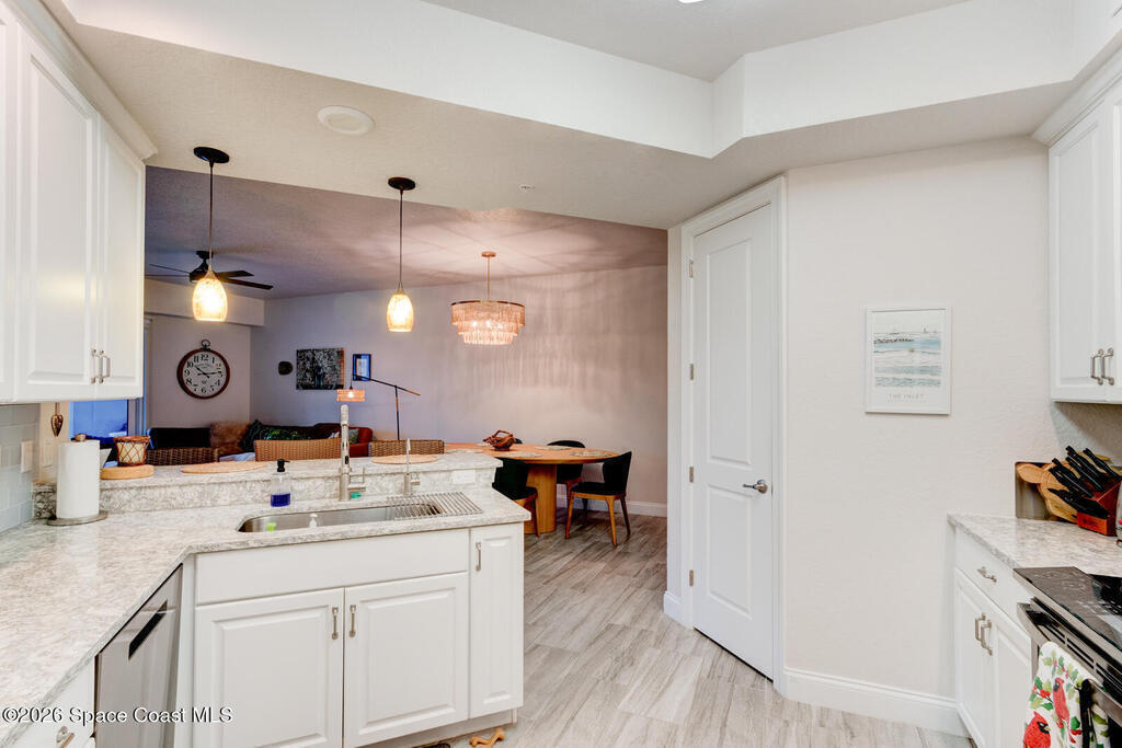 Experience one of the best values in Riverwalk at Coronado in this 2020-built waterfront residence that lives just like new, offering a refined coastal lifestyle enhanced by serene, calming water views from both the primary bedroom and the private balcony. Elevated three floors above sea level, this two bedroom, two bathroom residence combines modern construction with thoughtful upgrades and a peaceful setting overlooking the wide stretch of Smyrna Creek, and the tranquil backdrop of passing boats, wildlife, and evening sky reflections that make this location so special. Inside, the entire unit has been finished with beautiful wood grain tile flooring, including both bedrooms and the balcony, creating a seamless, low maintenance living environment that is ideal for full time or seasonal enjoyment