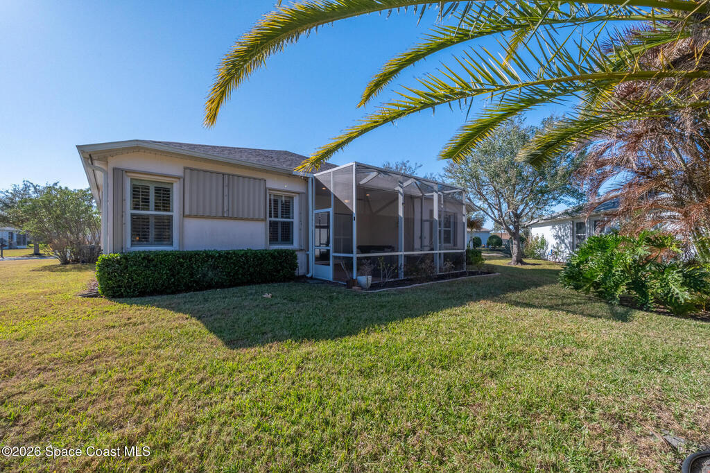 Stunning and meticulously maintained, this exceptional home reflects true pride of ownership with thoughtful details throughout. Offering both a spacious family room and formal living and dining rooms, the layout is ideal for everyday comfort and entertaining. The eat-in kitchen features a center island, breakfast bar, and pantry, creating a welcoming hub of the home. The luxurious primary suite is a peaceful retreat and includes California Closet systems in most closets for optimal organization. Step outside to the extended screened and covered lanai overlooking a serene oversized lot, perfect for relaxing or hosting guests. Additional highlights include plantation and accordion shutters, a 5-year-old roof, new water heater, and newer HVAC system. Low HOA dues provide access to a beautiful two-story clubhouse overlooking the pool and lakes, along with billiards, bocce ball, tennis, a fitness room, and more. All this, just 10 minutes from the beach, offering the best of Florida Living