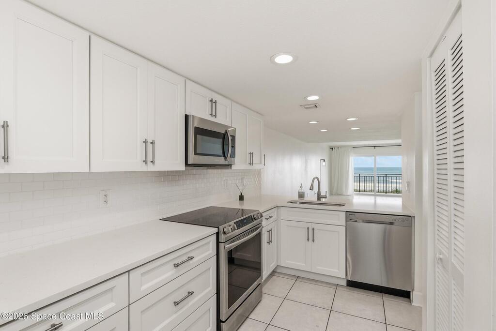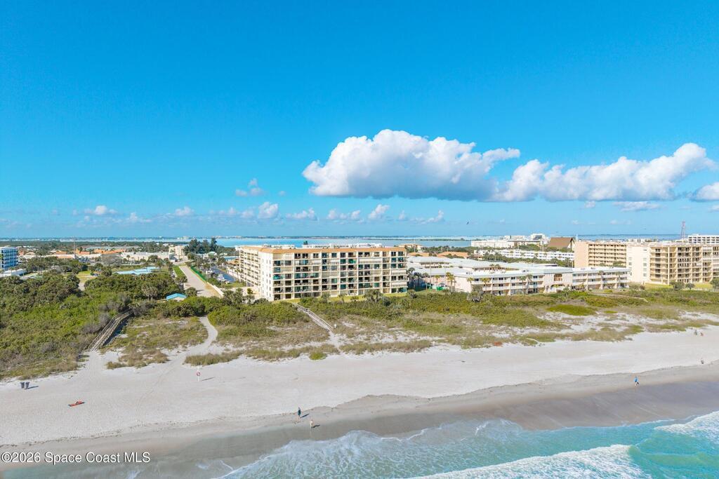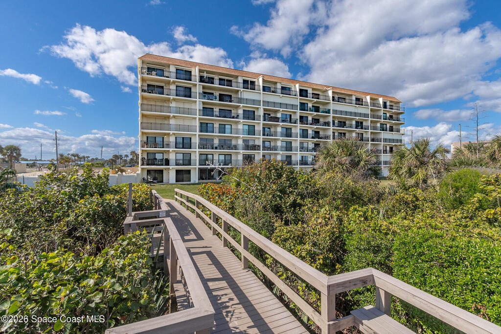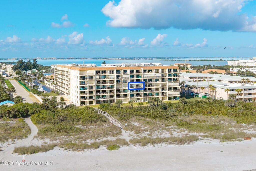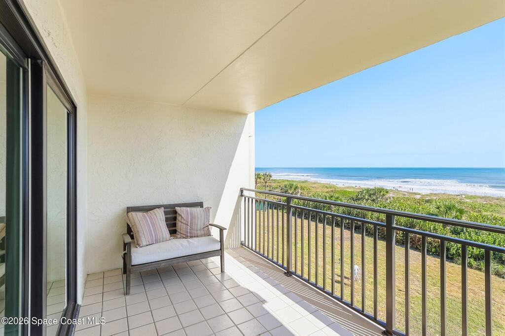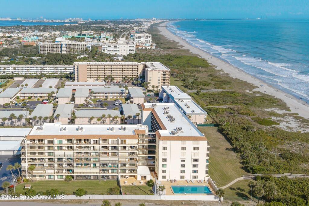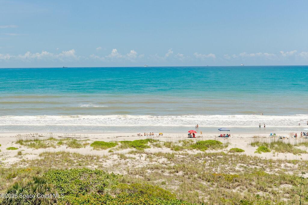 DIRECT Oceanfront Condo with beautiful remodeled kitchen and bathrooms. Spectacular DIRECT OCEAN VIEWS from this 4th floor updated condo. The bright and open kitchen features soft close cabinetry, beautiful counter tops, large basin sink w/ disposal, and updated stainless steel appliances with a slide in range and refrigerator with in-door water/ice dispenser. Solid surface flooring with large tile and wood look vinyl. Oceanfront primary suite with ensuite bathroom and walk in closet. Guest bedroom has beautiful sunset views. The residence also features updated impact slider doors and windows. You can see the launch pads providing spectacular rocket launch viewing! Private, 1-car garage plus ample guest parking onsite. You are steps from restaurants and shops from this desirable community that features resort-style amenities including a heated pool, gas BBQ grill, tennis, pickleball, beach access, clubhouse, exercise room, sauna, and an onsite manager. Priced to sell! Click for more...