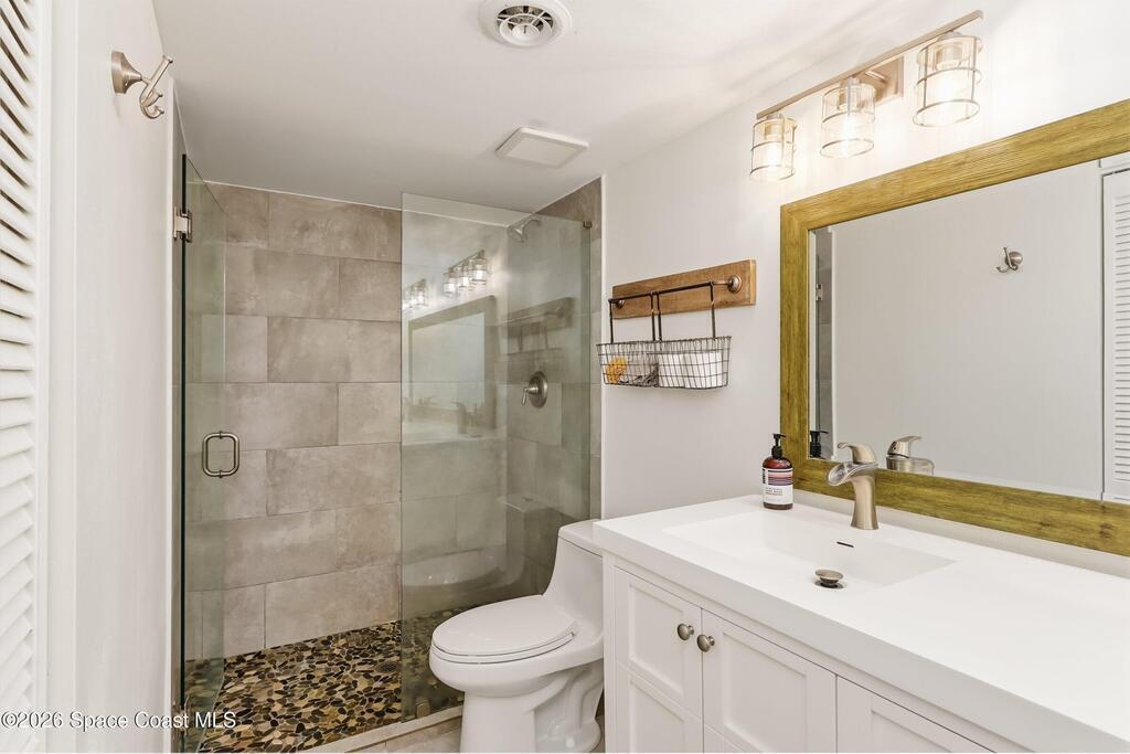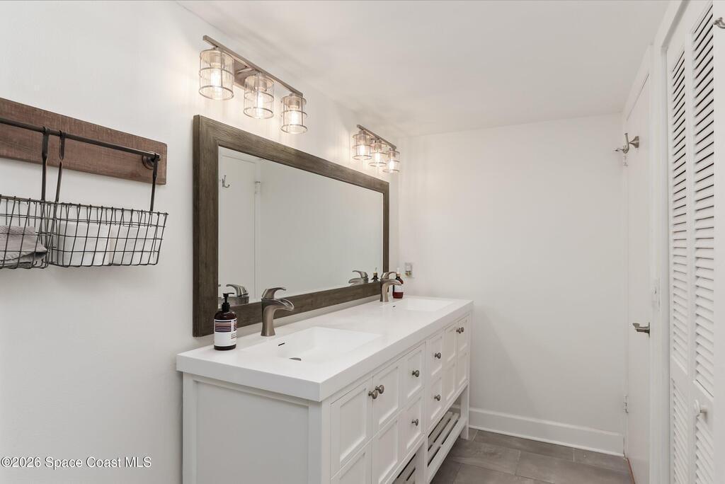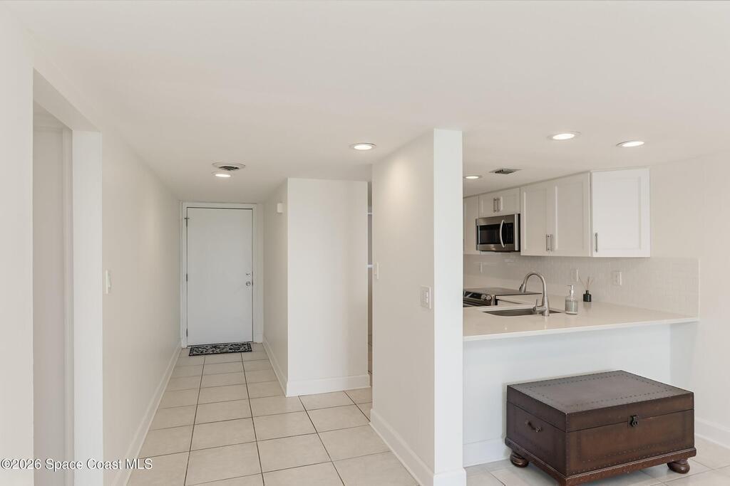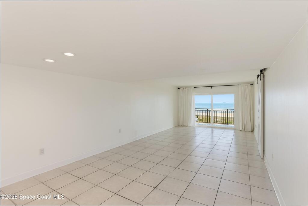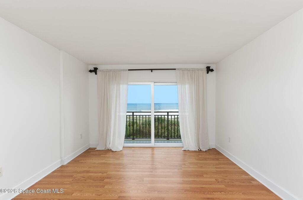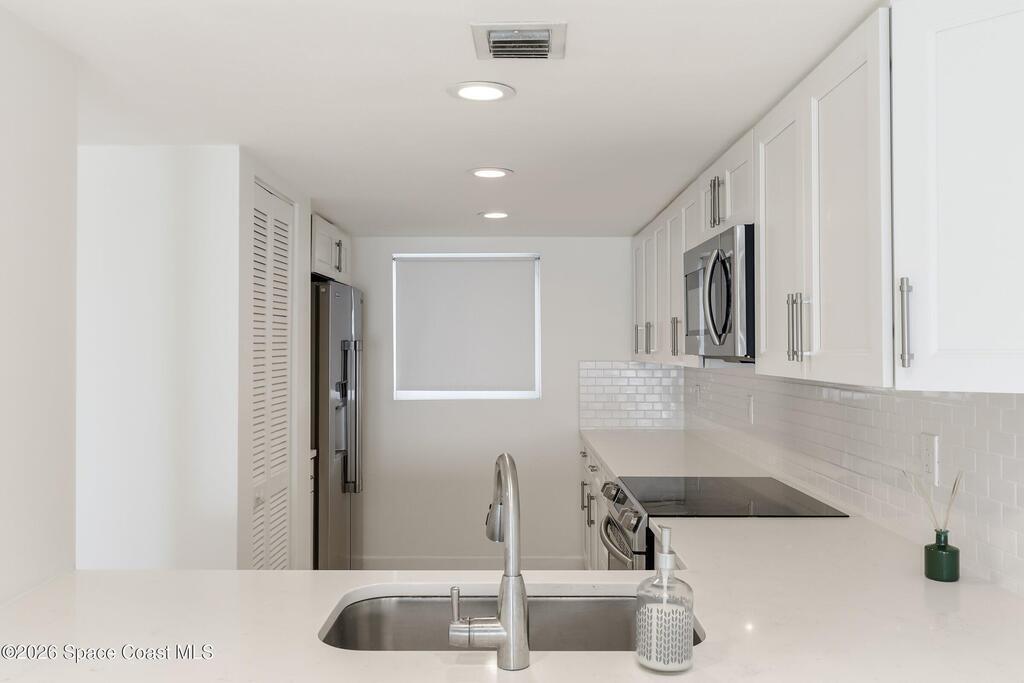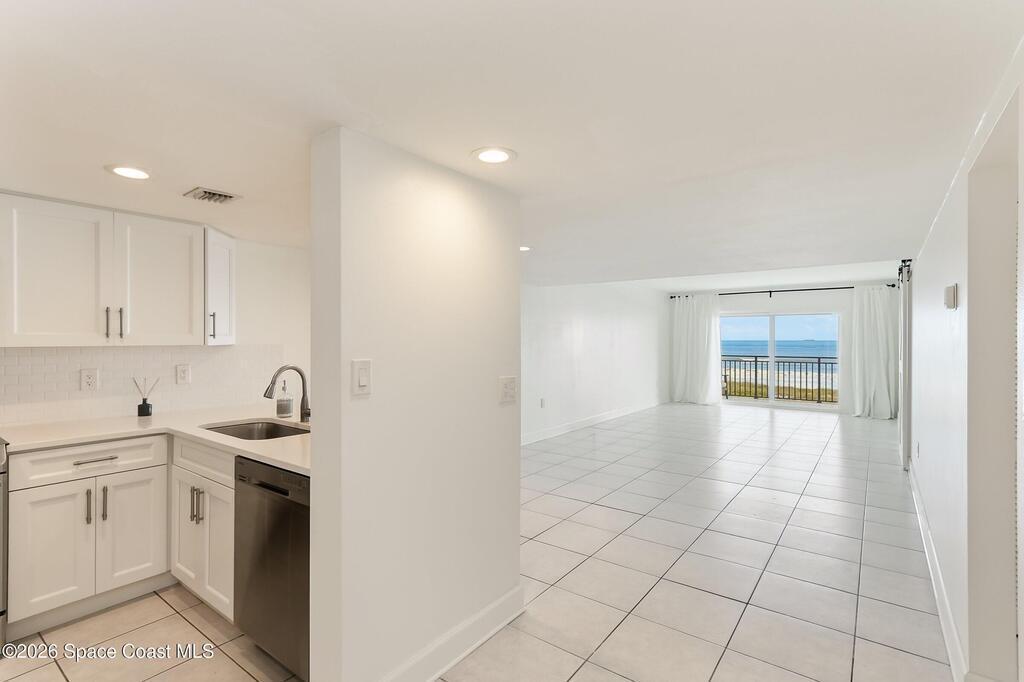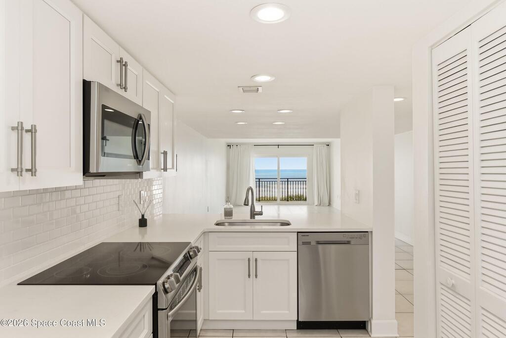 DIRECT Oceanfront Condo with beautiful remodeled kitchen and bathrooms. Spectacular DIRECT OCEAN VIEWS from this 4th floor updated condo. The bright and open kitchen features soft close cabinetry, beautiful counter tops, large basin sink w/ disposal, and updated stainless steel appliances with a slide in range and refrigerator with in-door water/ice dispenser. Solid surface flooring with large tile and wood look vinyl. Oceanfront primary suite with ensuite bathroom and walk in closet. Guest bedroom has beautiful sunset views. The residence also features updated impact slider doors and windows. You can see the launch pads providing spectacular rocket launch viewing! Private, 1-car garage plus ample guest parking onsite. You are steps from restaurants and shops from this desirable community that features resort-style amenities including a heated pool, gas BBQ grill, tennis, pickleball, beach access, clubhouse, exercise room, sauna, and an onsite manager. Priced to sell! Click for more...