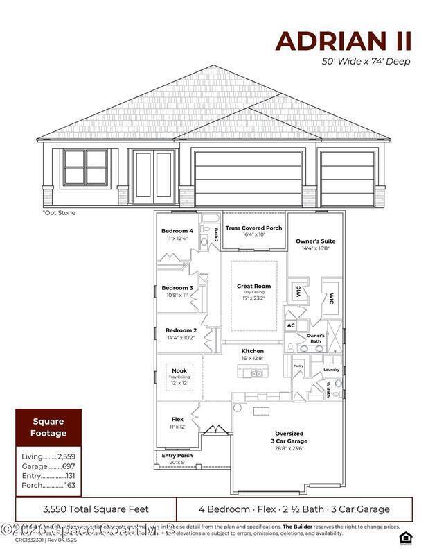 $10, 000.00 FLEX CASH WITH APPROVED LENDER.Welcome to this newly constructed Adrian II floor plan featuring 4 bedrooms, a flex space, 2.5 bathrooms, and a 3-car garage. Interior highlights include 8' doors, quartz countertops, and a chef's kitchen. Trussed front and rear porches provide additional outdoor living space. Home is served by city water and septic. All this on just over an acre .