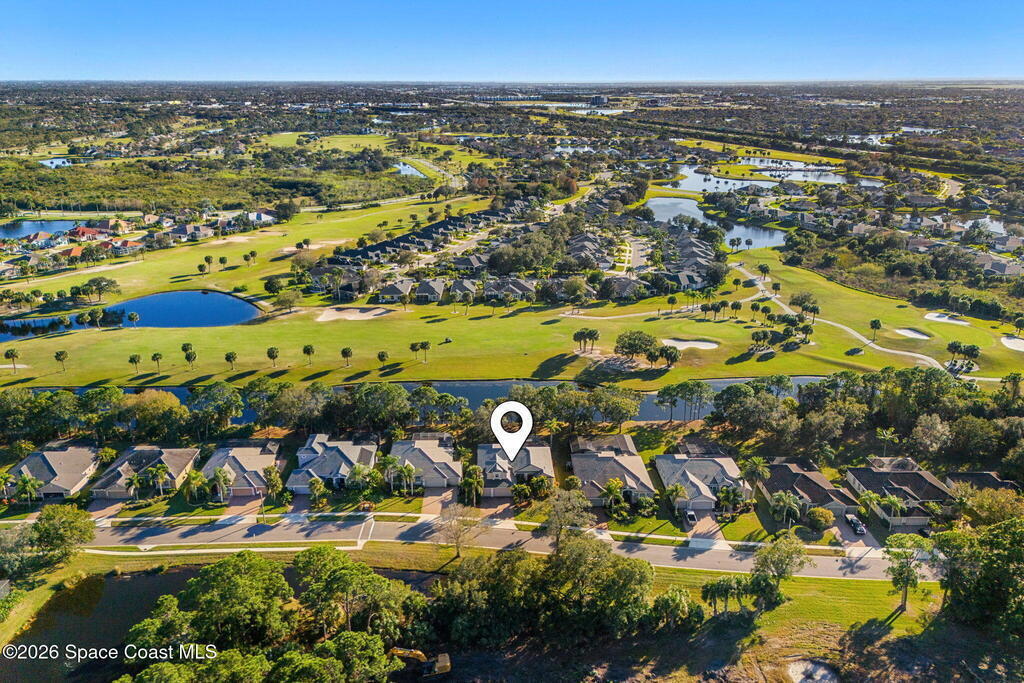Absolutely beautiful Bordeaux Grand model in the prestigious, non-gated Augusta Trace community - a quiet, private, tucked-away neighborhood. This property sits directly on the golf course with a serene creek backdrop, offering stunning views from the screened turquoise pool, inground spa, and waterfall. Featuring a brand new 50-year concrete tile roof, this 2, 500+ sq ft home offers 4 bedrooms in a split floor plan, 3 full bathrooms, two living spaces, a formal dining room, kitchen nook, and abundant natural light. The kitchen features a built in office nook, and the only second-floor space is a versatile loft. The spacious primary suite includes two walk-in closets, dual vanities, a garden tub, walk-in shower, and private water closet. A full three-car garage adds convenience. The front yard is beautifully landscaped with palms and tropical greenery. Fully equipped with metal storm shutters for peace of mind. A rare blend of privacy, elegance, and resort-style living.