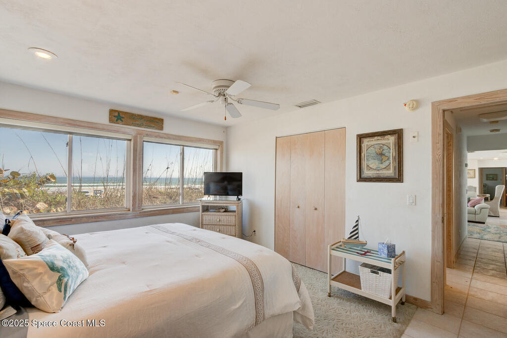 Oceanfront, ocean views, ocean access. Welcome to an extraordinary opportunity to own a true gem in the heart of New Smyrna Beach's most exclusive and sought-after area, the Oceanfront Boardwalk. This stunning residence is more than just a home; it's a lifestyle. Perched directly on the sand with unparalleled views of the Atlantic Ocean, this property invites you to step off your back deck and sink your toes into the beach, making every day a seaside escape. This exceptional coastal retreat boasts three spacious bedrooms and three full bathrooms, with two of the bedrooms designed as luxurious master suites, each offering its own breathtaking ocean views completing your private retreat. Built on pilon construction with impact-rated windows, this home is designed for both durability and peace of mind. This home is as modern as it is charming.
