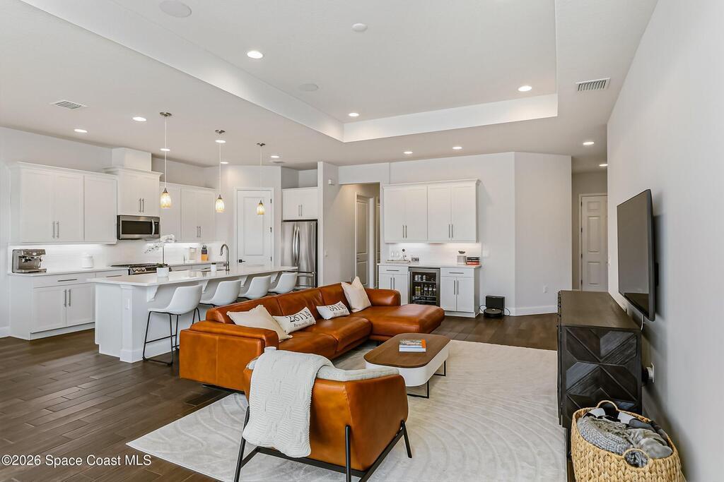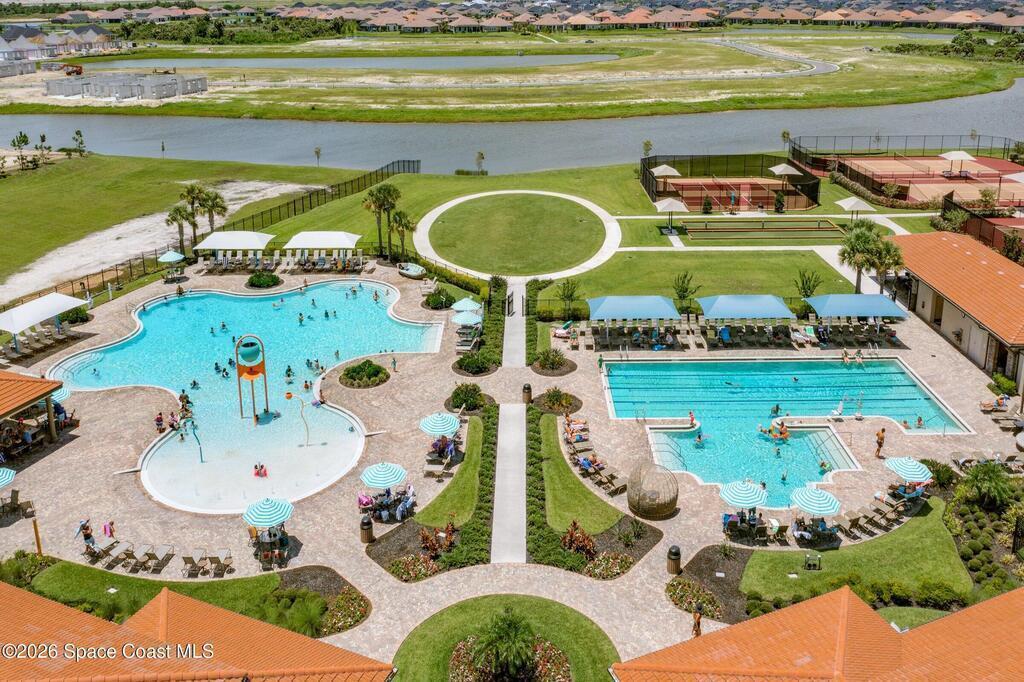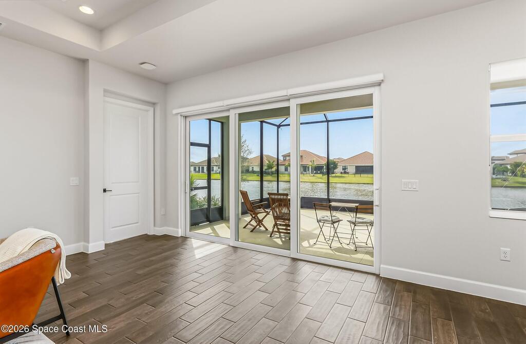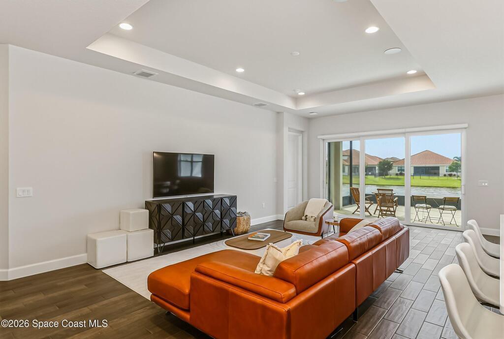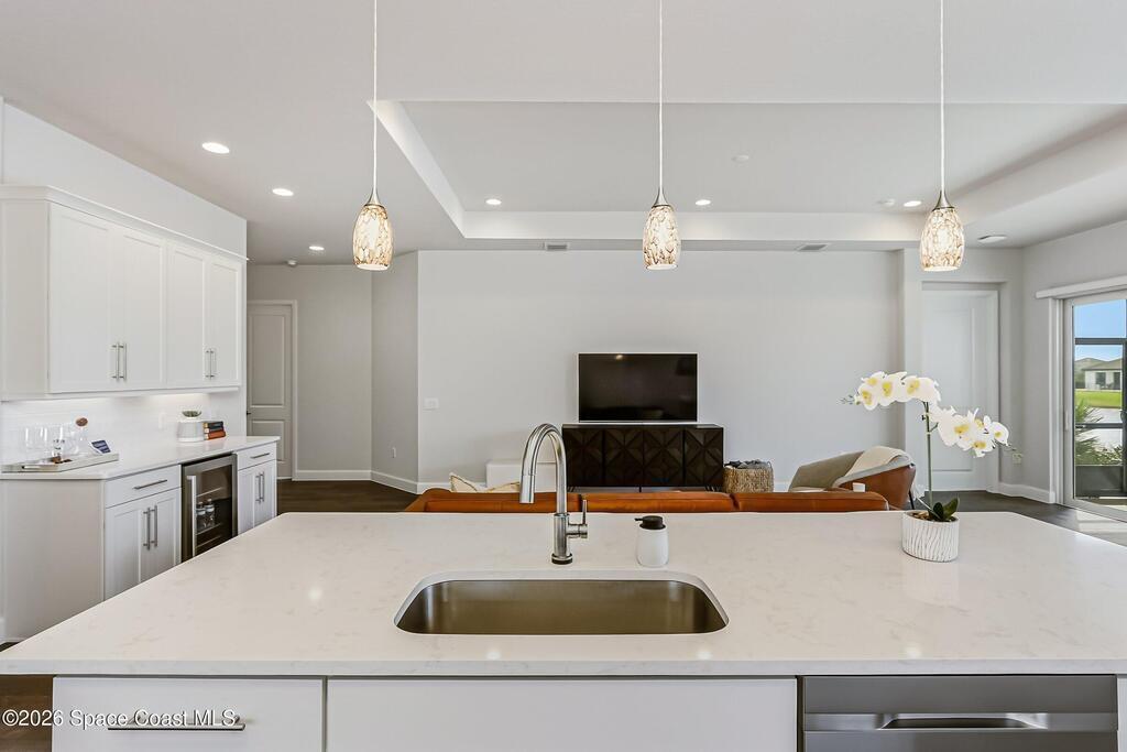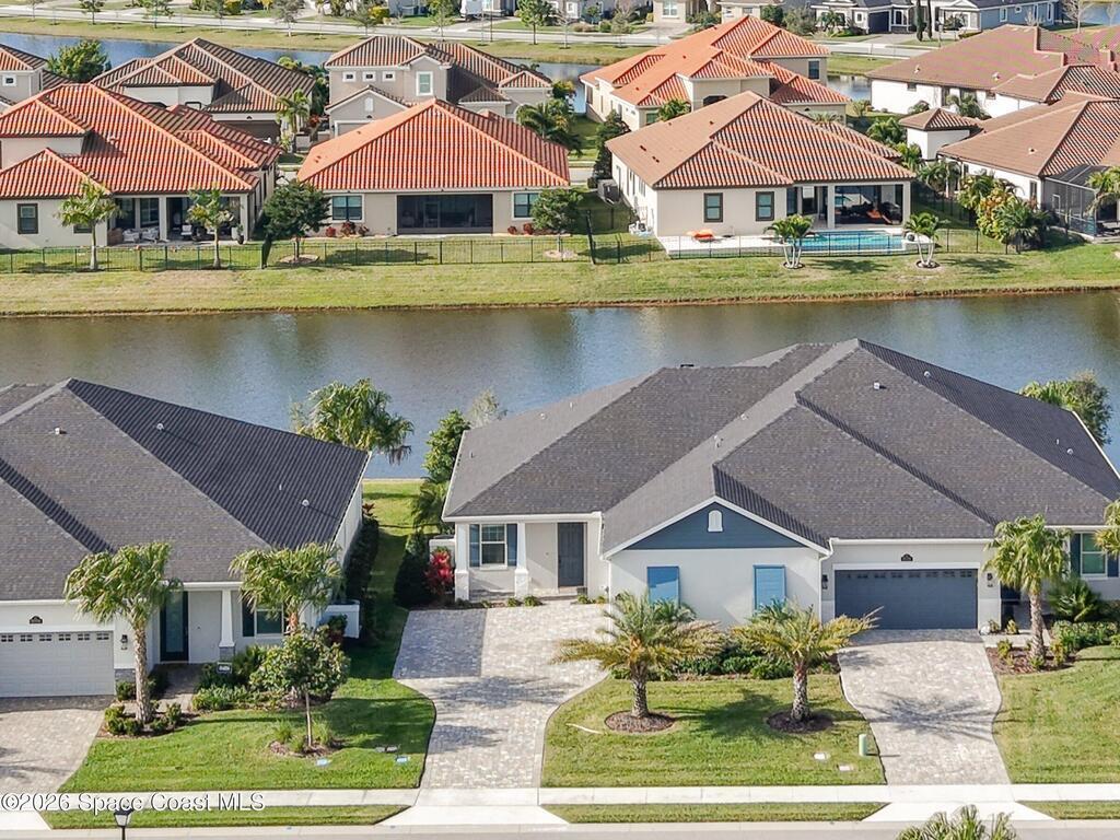 Immaculate 3 BD, 2 BA, half-duplex w/ side-load 2 car garage, nestled in the highly desirable Avalonia community, an upscale, carefree lifestyle, in Viera. Coronado floor plan offers an elegant open-concept design, where breathtaking water views welcome you the moment you enter. Gourmet kitchen is beautifully appointed w/ quartz countertops, large kitchen island, gas range, all premium appliances, opening to a spacious family room ideal for refined entertaining. Triple glass sliders lead to a fully screened, extended lanai that seamlessly blends indoor & outdoor living while overlooking tranquil water vistas. Upgrades include plank wood-like tile, tray ceilings, impact-resistant front windows, beverage/wine center w/ refrigerator tankless gas water heater. Enjoy resort-style living - HOA includes yard care, professional landscaping, & exterior maintenance. Located within walking distance to schools, Addison Clubhouse, shopping & dining. Only 45 min. to Orlando & 15 min. to beaches