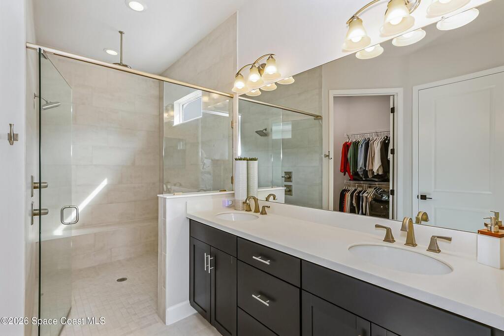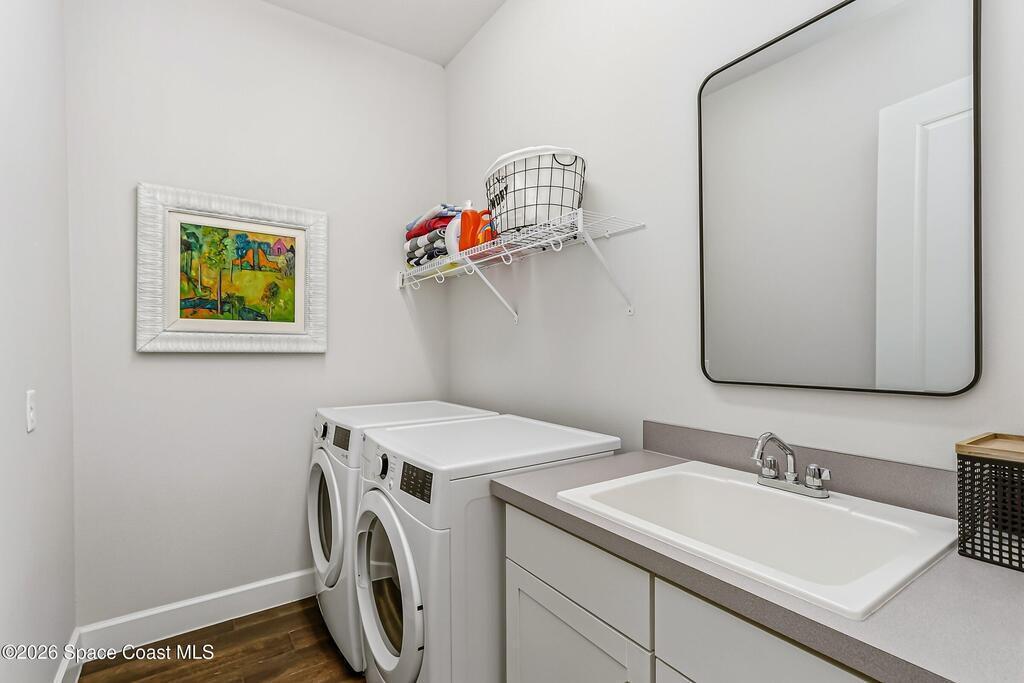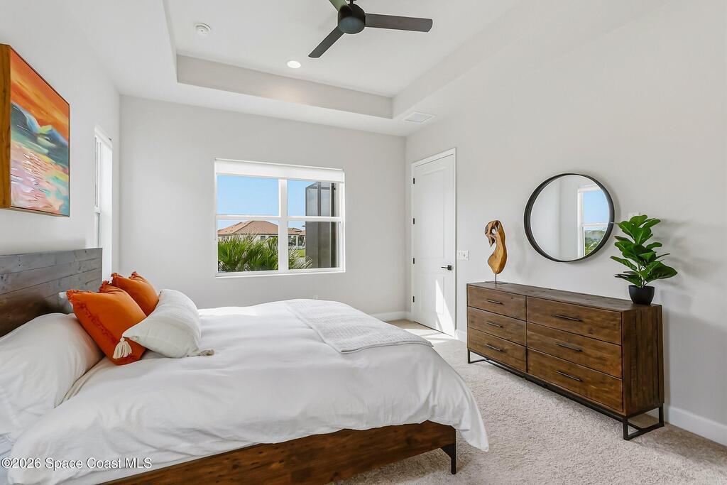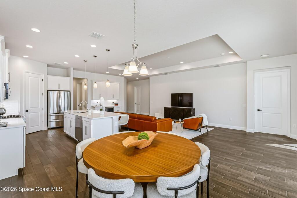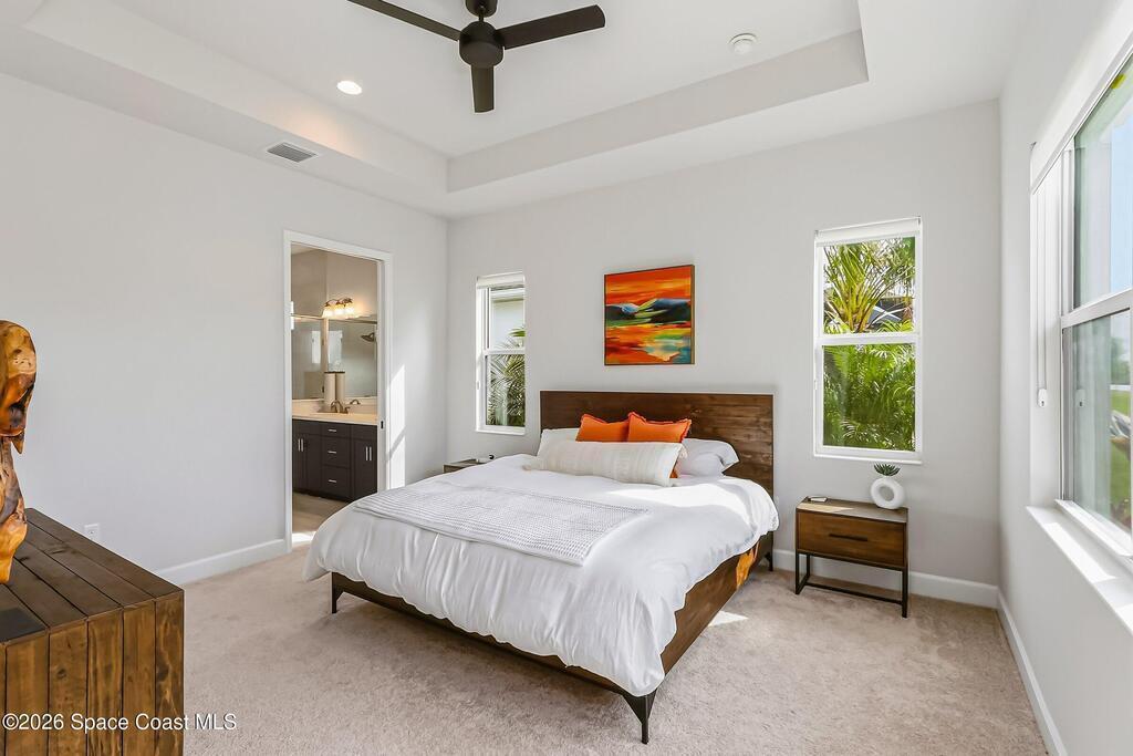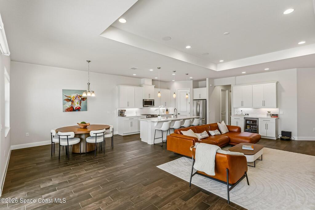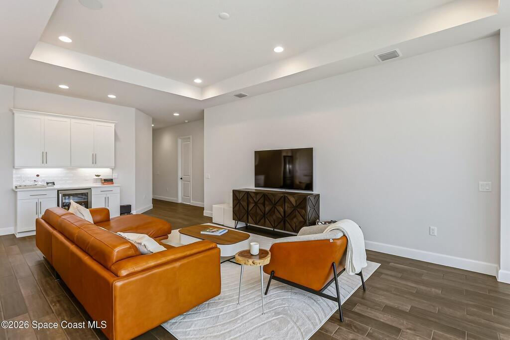 Immaculate 3 BD, 2 BA, half-duplex w/ side-load 2 car garage, nestled in the highly desirable Avalonia community, an upscale, carefree lifestyle, in Viera. Coronado floor plan offers an elegant open-concept design, where breathtaking water views welcome you the moment you enter. Gourmet kitchen is beautifully appointed w/ quartz countertops, large kitchen island, gas range, all premium appliances, opening to a spacious family room ideal for refined entertaining. Triple glass sliders lead to a fully screened, extended lanai that seamlessly blends indoor & outdoor living while overlooking tranquil water vistas. Upgrades include plank wood-like tile, tray ceilings, impact-resistant front windows, beverage/wine center w/ refrigerator tankless gas water heater. Enjoy resort-style living - HOA includes yard care, professional landscaping, & exterior maintenance. Located within walking distance to schools, Addison Clubhouse, shopping & dining. Only 45 min. to Orlando & 15 min. to beaches