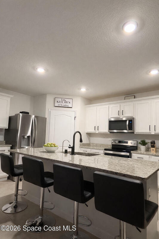 You won't want to miss this beautiful 5-bedroom, 3-bath home located in the highly desirable Harmony West community. Designed for modern living and effortless entertaining, this home features an open-concept floor plan filled with natural light. The spacious eat-in kitchen is a standout, offering granite countertops, stainless steel appliances, an oversized island, and a walk-in pantry. A first-floor bedroom provides flexibility for guests, teens, or in-laws.Upstairs, the primary suite impresses with two walk-in closets and a private en-suite bathroom featuring dual sinks. An additional flex room is perfect for a home office, playroom, or home gym. Enjoy peace of mind and comfort with numerous upgrades, including a whole-home water filtration system, privacy fence, extended paver driveway, and patio. Harmony West offers resort-style amenities, including a 5, 000-square-foot pool, splash pad, clubhouse, and fitness center--perfect for an active and social lifestyle.