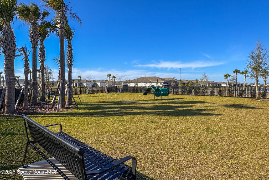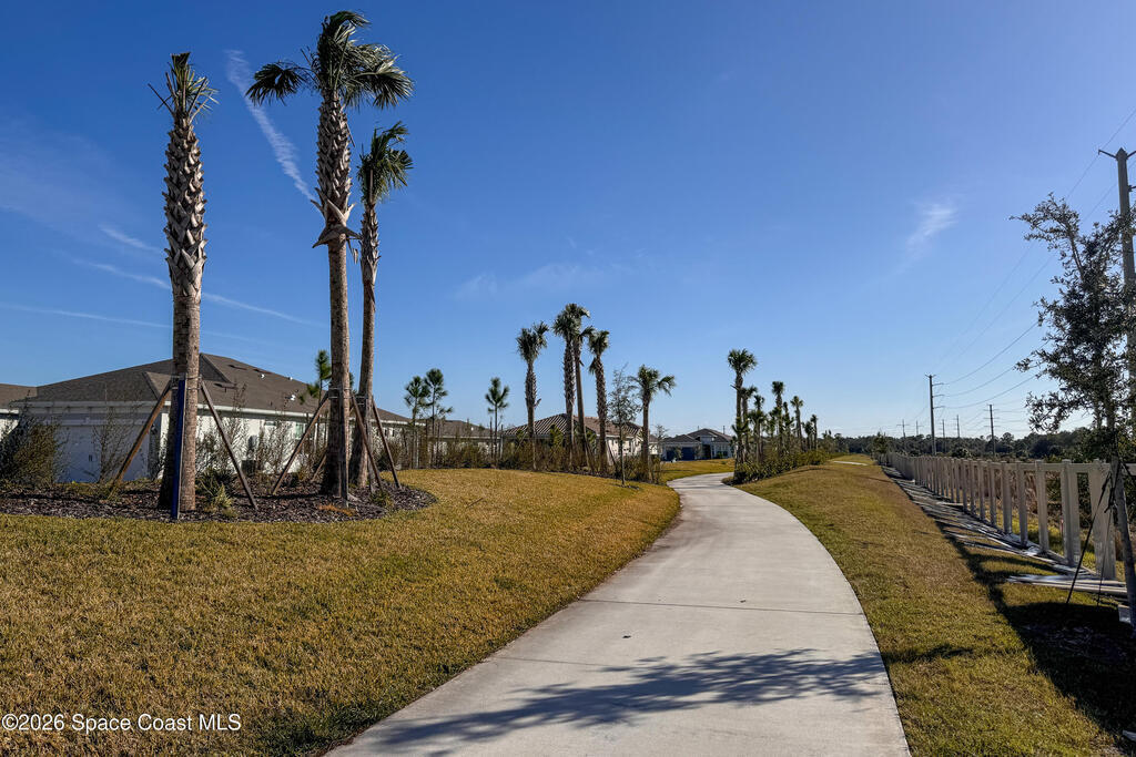Move in ready! 2023 Hallmark. Exterior enhancements include redesigned front landscaping, additional palm trees, installed gutters, fenced backyard and a professionally screened back patio. Inside, the home features granite kitchen countertops fresh paint, a remodeled guest bathroom with a walk-in shower, and ceiling fans in every room. The garage offers epoxied floor with ample storage, while the laundry room boasts six cabinets and a countertop workspace. HOA fees are $355 monthly, covering landscaping and future amenities including a walking trail, 2 dog parks, tennis / pickle ball courts, Tavern & Grill, Gym, Pools, Outdoor concert venue, Duran Golf Course Membership. The neighborhood is wonderful, with friendly and respectful neighbors who foster a strong sense of community. Monthly block parties at the lifestyle house create a welcoming environment, making it a peaceful and desirable location.