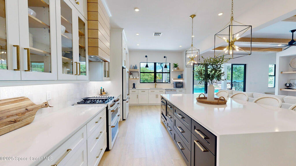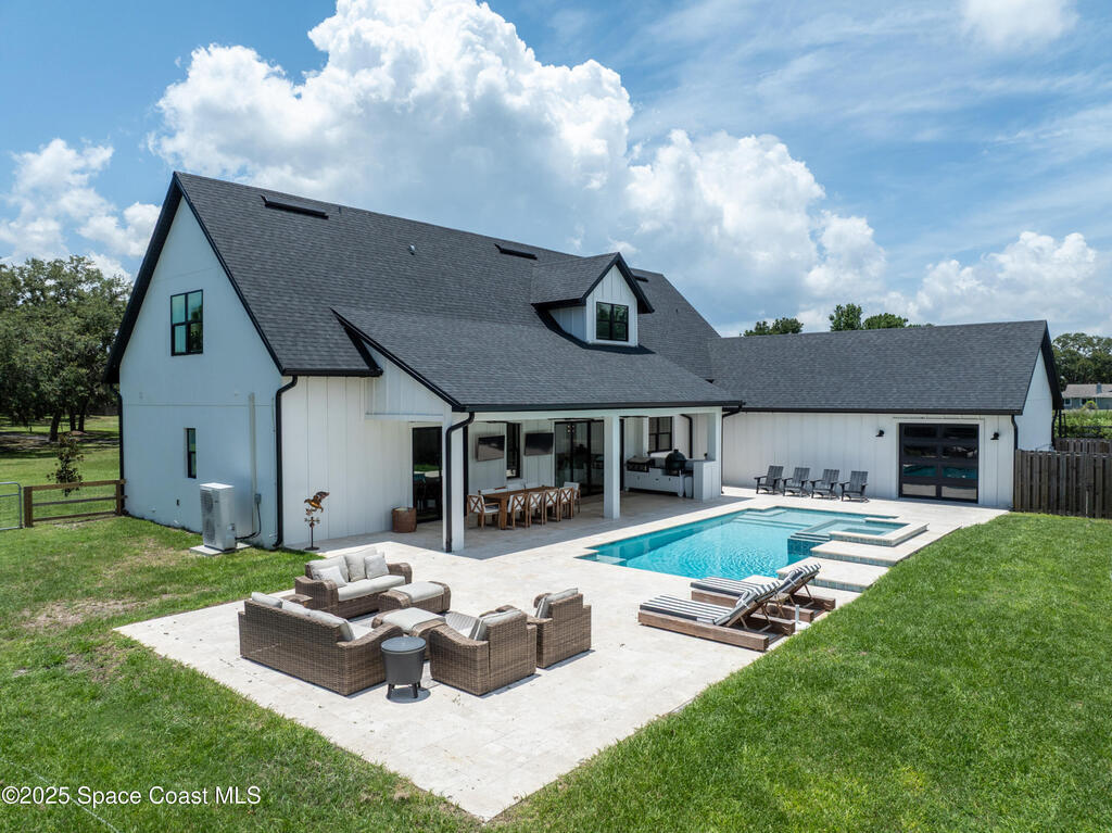 *Modern Farmhouse on 7 Private Acres with Lake & Pool*Rare opportunity to own a custom-built modern farmhouse on nearly 7 secluded, dry acres in the heart of Merritt Island. This 6-bed, 3-bath home features nearly 3, 800 sq ft of stylish, functional living space--including an office, gym, and chef's kitchen with quartz waterfall island, GE Cafe appliances, and custom cabinetry. Enjoy a private 1.3-acre lake, heated pool & spa, outdoor kitchen, impact windows, propane fireplace, and a 1/4-mile private driveway. Zoned for top-rated schools and just minutes to beaches, shopping, and the Space Center. Room for horses, barn, or simply to relax in total serenity. Truly one-of-a-kind--schedule your private tour today! Updated exterior photos coming soon. Seller recently completed a major front elevation improvement and landscape project.