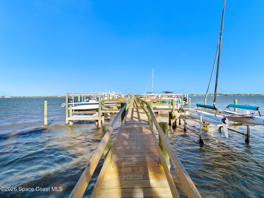 Rarely is a $295K condo available on the Indian River with three bedrooms, a two-car garage and access to affordable boat slips. Jackpot! This one has it all! The first floor offers a bright and open plan with a breezy screened porch. Visit with family and friends while prepping meals in a kitchen with granite counter tops, beautiful wood cabinets, efficient storage and newer appliances. Enjoy peaceful slumber upstairs where two bedrooms and two baths await. Set up your office or craft room in the third bedroom downstairs. Tie up at your Indian River boat slip, cool off in the sparkling swimming pool, burn some calories on the tennis courts, in the gym, or on the hiking trails. And catch the late afternoon breeze in the riverside picnic grove. It's the life in River Way! Lock and leave since the community is walled and gated and storm shutters protect the unit. Outside the gate: Viera Boulevard at US1 offers easy access to employment, shopping, and top-rated schools. Pet friendly too.