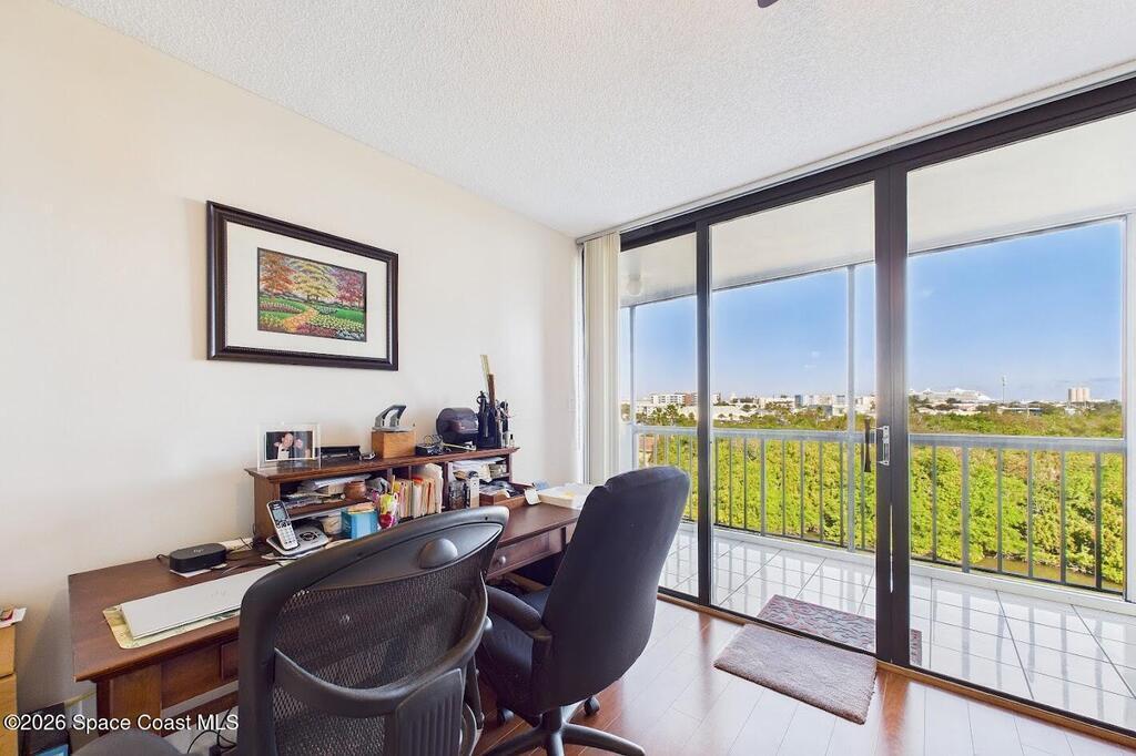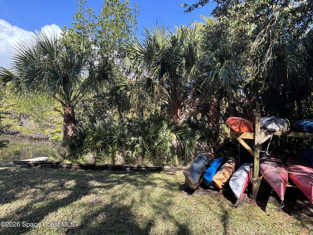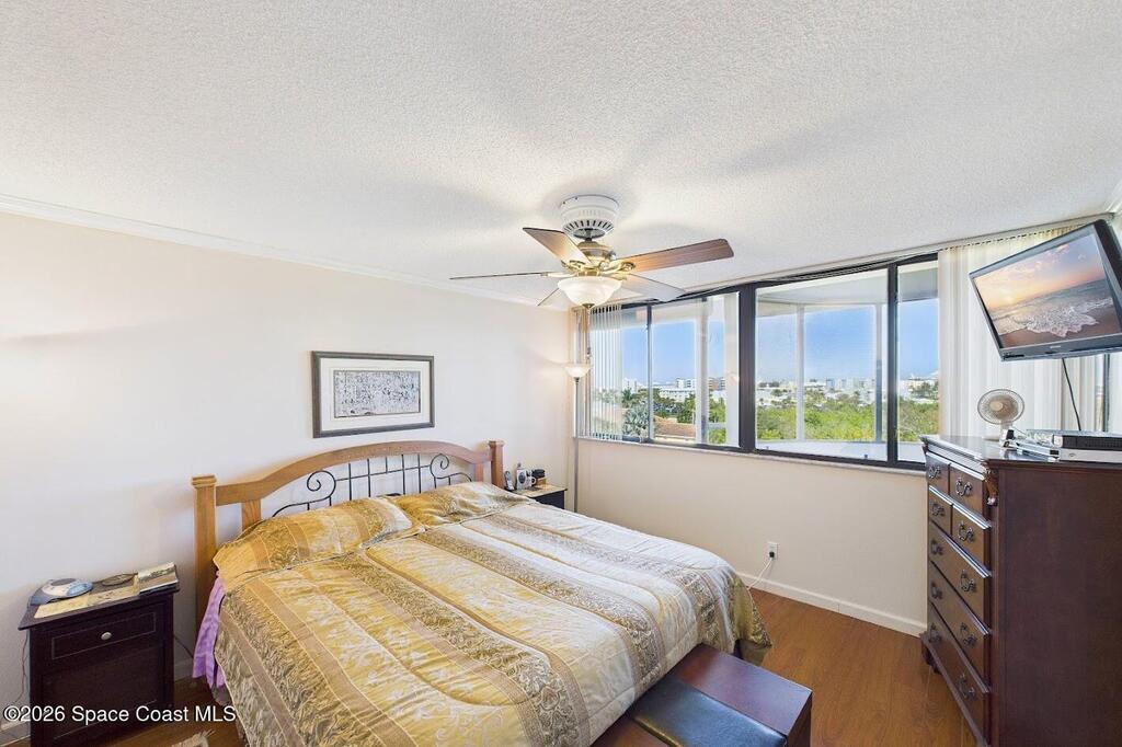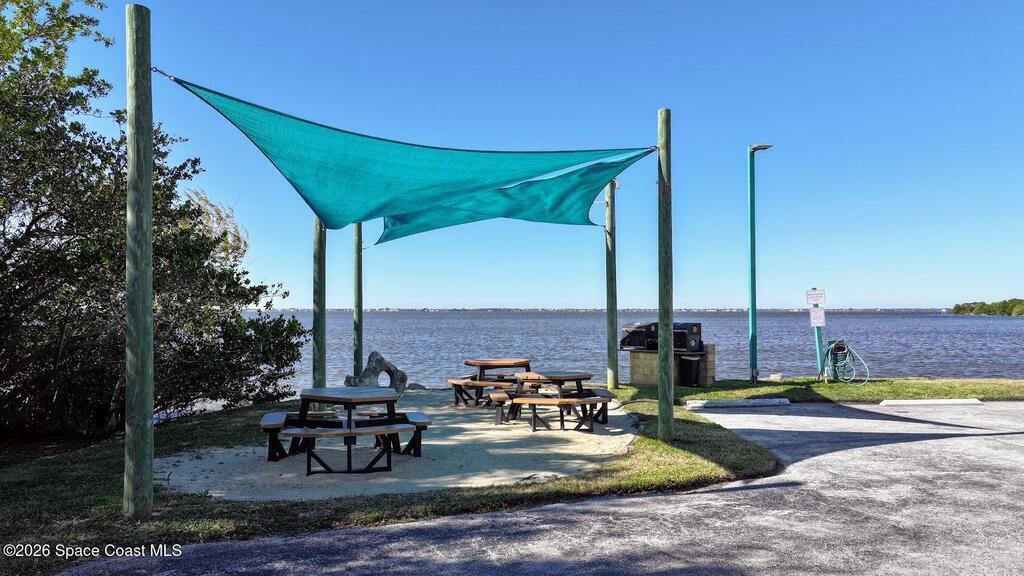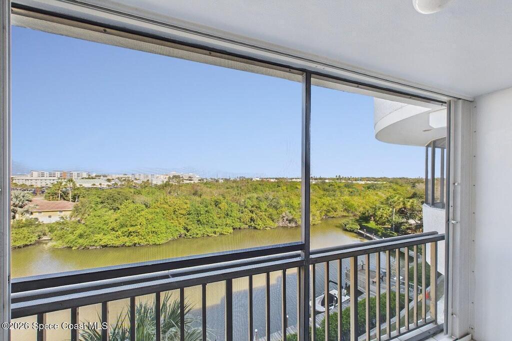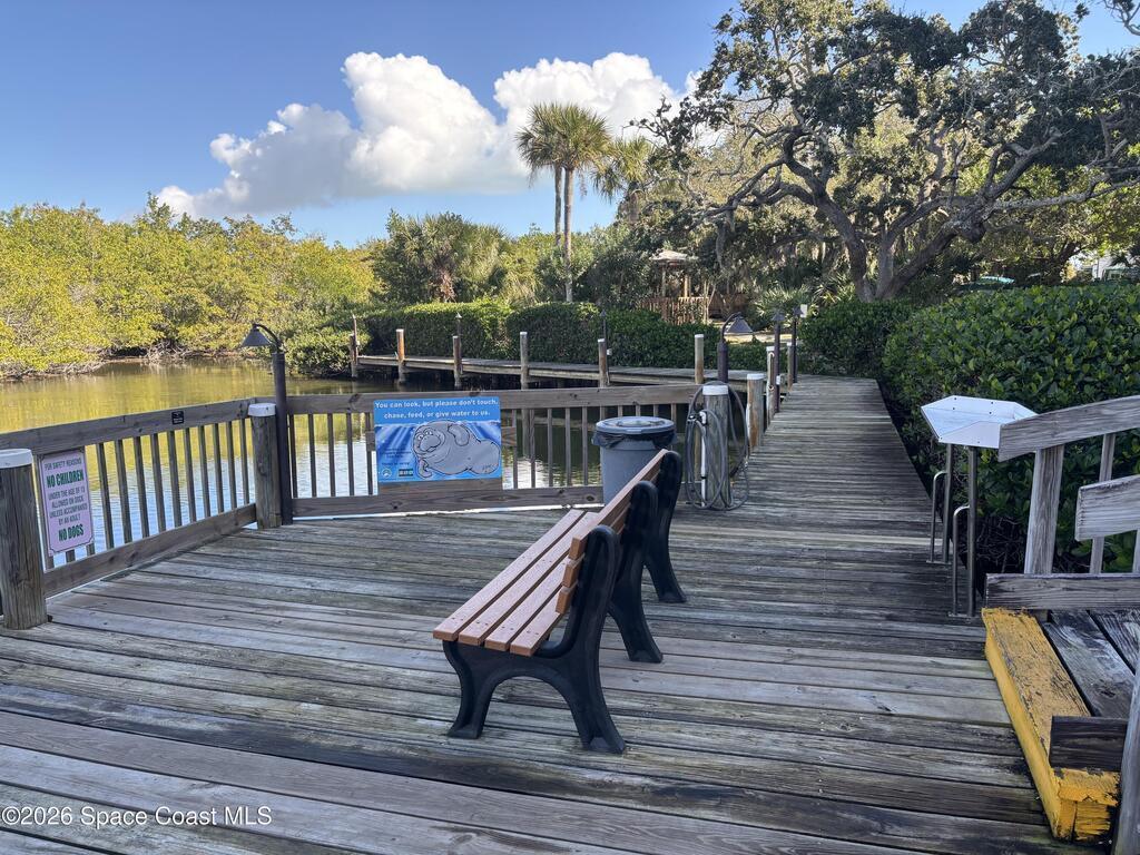 Relax at the heated pool, fish off the dock or gazebo or watch the ships come and go. See space launches and manatees play almost daily from either of the 2 balconies on the 5th floor of this 3 bedroom completely renovated river front condo in the Treasure Island gated community. Upgraded floors (no carpet), granite counter tops, updated kitchen and baths with solid wood cabinets, floor to ceiling tile bathrooms, and wood tones throughout. All roofs replaced in 2024 and the HVAC in this unit replaced 2019 (10yr. transfer warranty). The Association includes limited, but even more rare access to boat dock spaces and boat trailer spaces on-sight (assigned spaces). Association fees are one of the lowest monthly dues in the area. The monthly fee covers 2 gazebos, a heated pool, fishing from the dock that runs the length of the property, and a covered pull-through entry portico to each building for unloading vehicles at the elevator (see attached list for more upgrades & amenities).