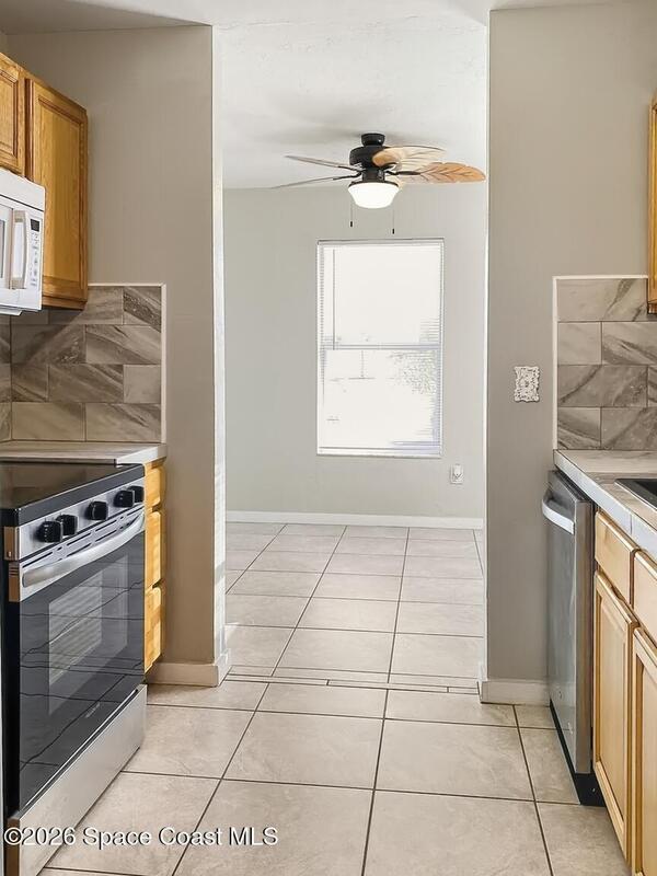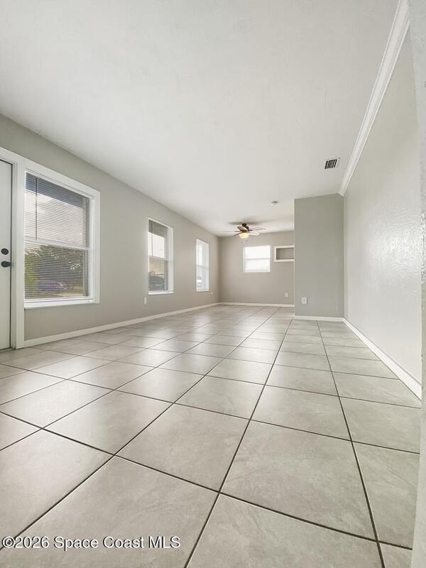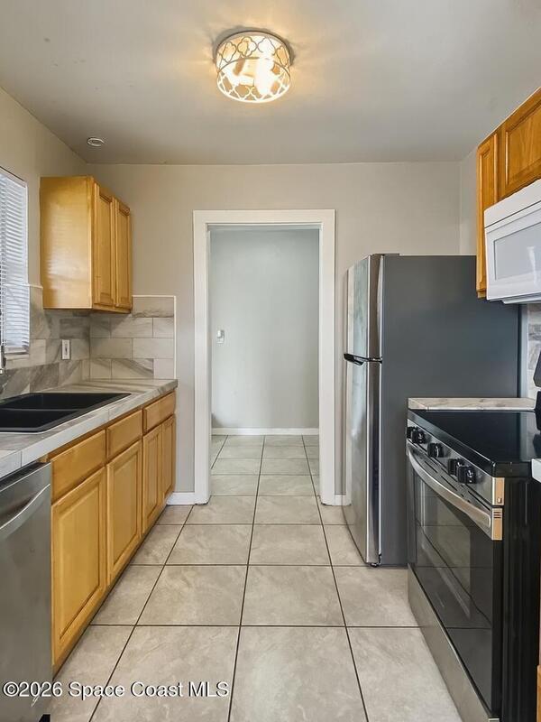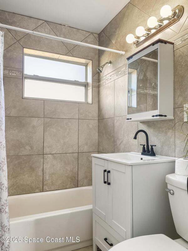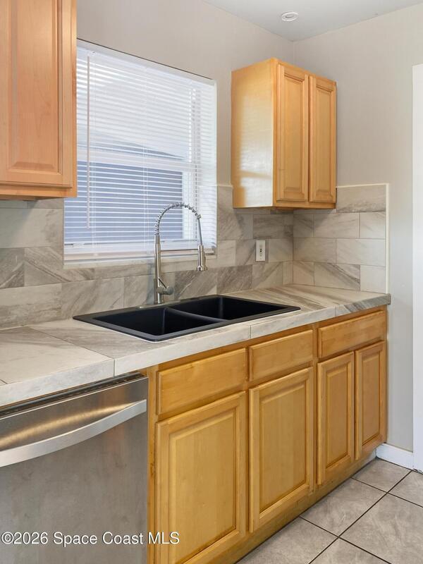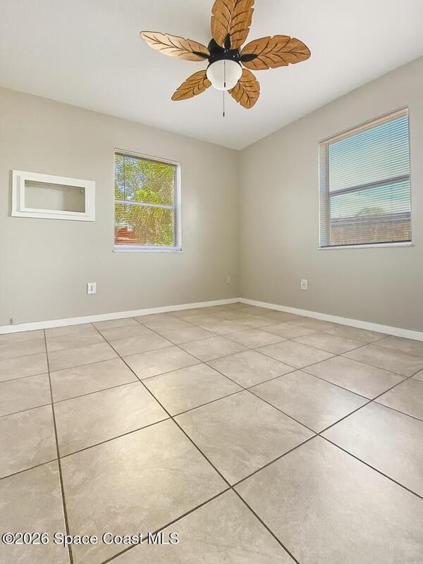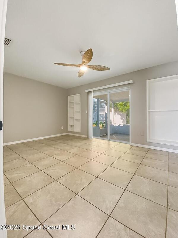 Corner lot with new metal roof and garage!Experience relaxed everyday living in this well-maintained concrete block home, designed for comfort, durability, and easy maintenance. A new metal roof (2025), a 5-year-old HVAC system, and an electric panel with modern wiring that passes inspection provide year-round peace of mind.Inside, tile flooring flows throughout, creating a bright, cohesive feel. The updated kitchen features a functional layout with modern finishes, while the remodeled bathroom includes floor-to-ceiling tile, adding a clean, contemporary touch.Step outside to a fully screened lanai outside the master bedroom, with a fenced backyard with fresh landscaping, suitable for entertaining, pets, or outdoor relaxation. The property includes a detached 432 sq ft garage, offering generous space for storage, a workshop, or hobbies, along with a covered carport.Conveniently located minutes from Turkey Creek Reserve, fishin