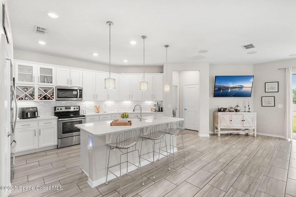 Enjoy vibrant Florida living in this modern 4-bed, 2-bath home tucked away on a peaceful West Melbourne cul-de-sac. Just minutes from rocket launches, beaches, and Indialantic's coastal fun. Step inside to an open concept, sunlit layout with a chef's kitchen featuring quartz counters and stainless appliances. No carpet, brand new 2025 roof, and built-in premium speakers maximize comfort and convenience. Relax in your private primary suite with a spa-style shower and walk-in closet. Sip morning coffee under palm trees in the tranquil backyard, ready for your dream pool. Close to top schools, shopping, and tech employers, this home exemplifies easy Space Coast livinga"perfect for entertaining, work, or play. Don't miss outa"schedule your tour and experience this exceptional, move-in ready home today!