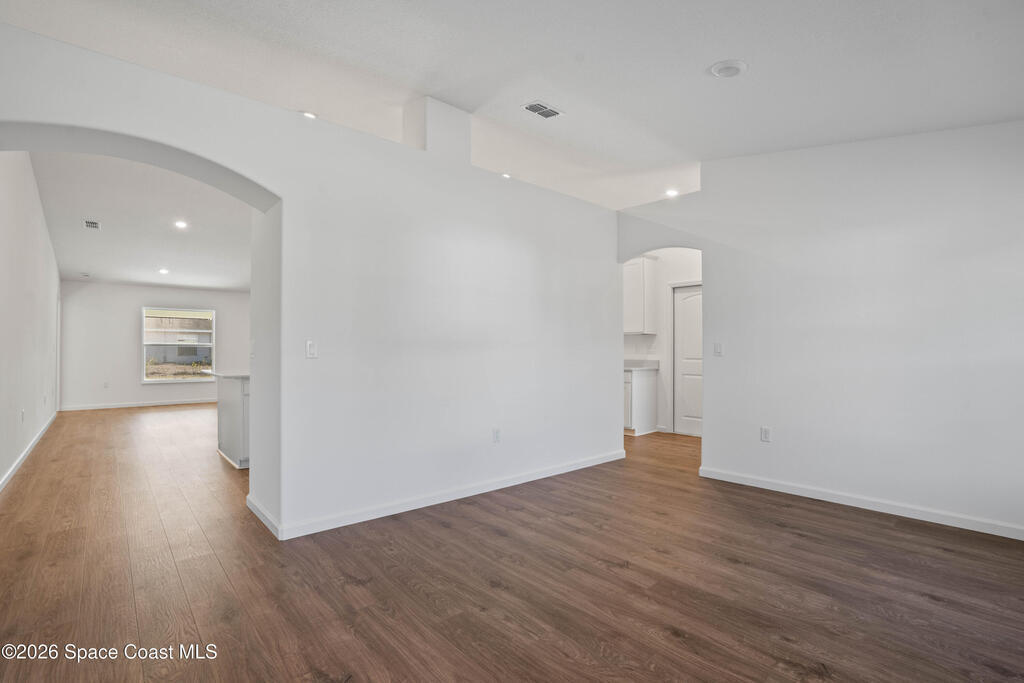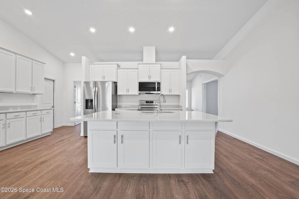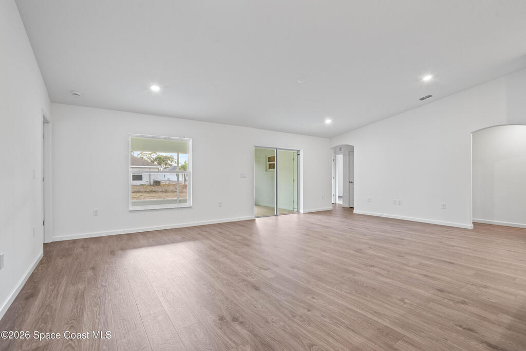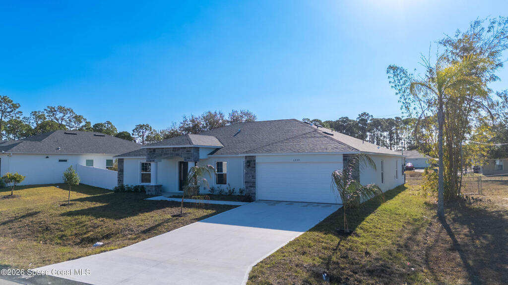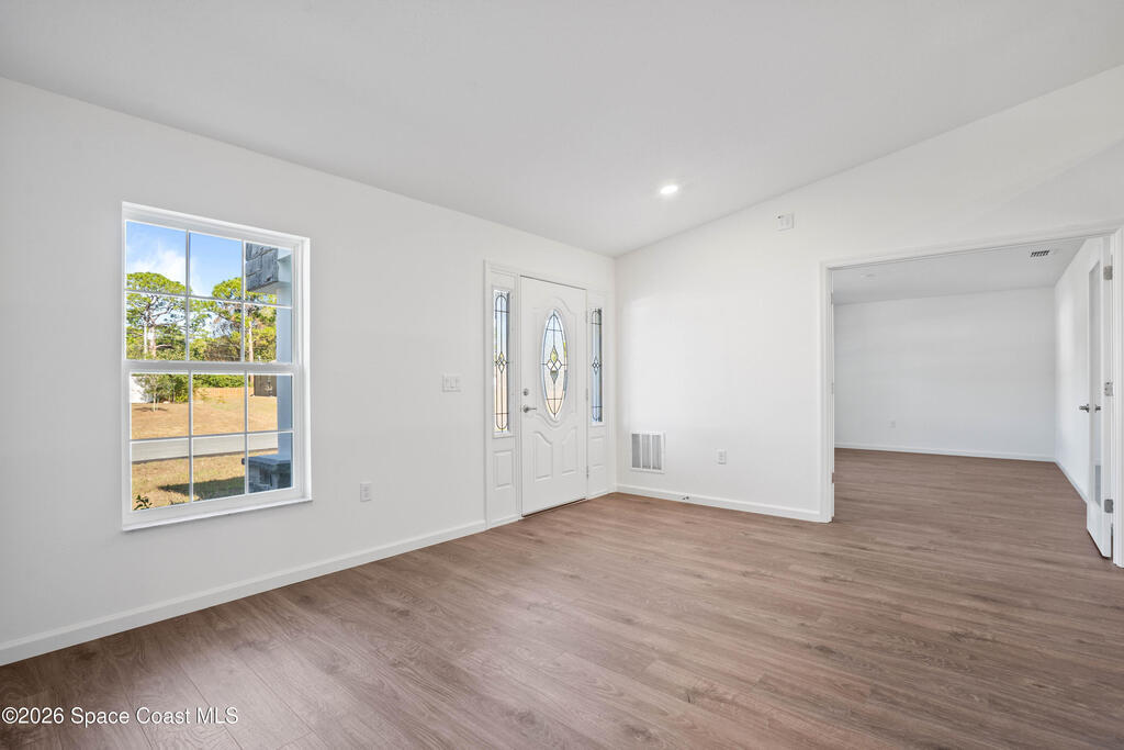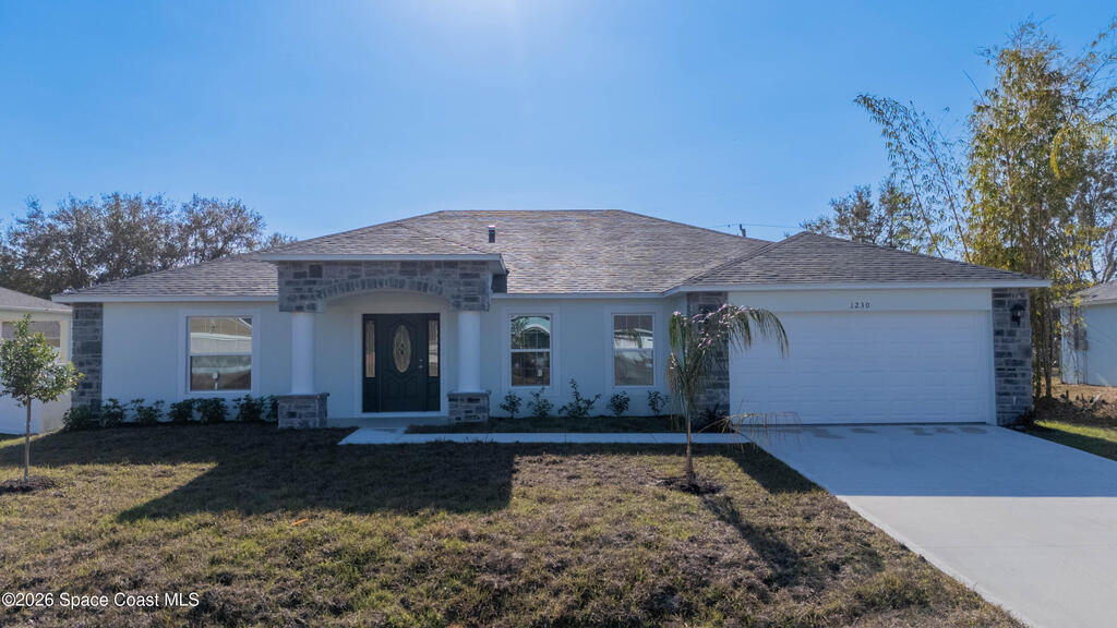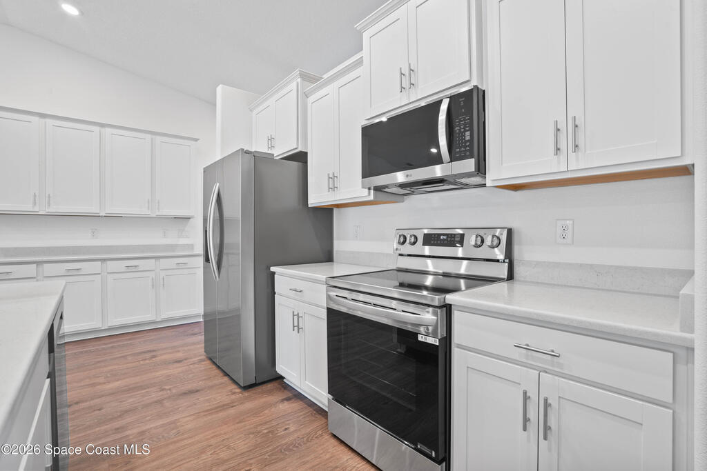 Beautiful New Construction Home on City Water with Septic.This amazingly designed 4-bedroom, 3-bath home with a dedicated den and 2-car garage offers comfort, style, and energy efficiency throughout. Enjoy an open living space with Mohawk RevWood plank flooring throughout the home and tile flooring in all bathrooms and the laundry room. The kitchen features staggered white cabinets with crown molding, quartz countertops, stainless steel appliances including range, dishwasher, built-in microwave, and a 25 cu. ft. side-by-side refrigerator. Cabinets above the washer and dryer add extra storage, and the kitchen vents to the exterior. The primary suite boasts a tray ceiling, dimmable LED lighting, and a spacious 9-foot walk-in tiled shower. Both guest bathrooms include Level 2 tile surrounds. The family room and primary bedroom feature LED lighting on dimmers for added ambiance. Additional highlights include a 20' x 12' trussed screened porch, exterior stone accents, double single-lite