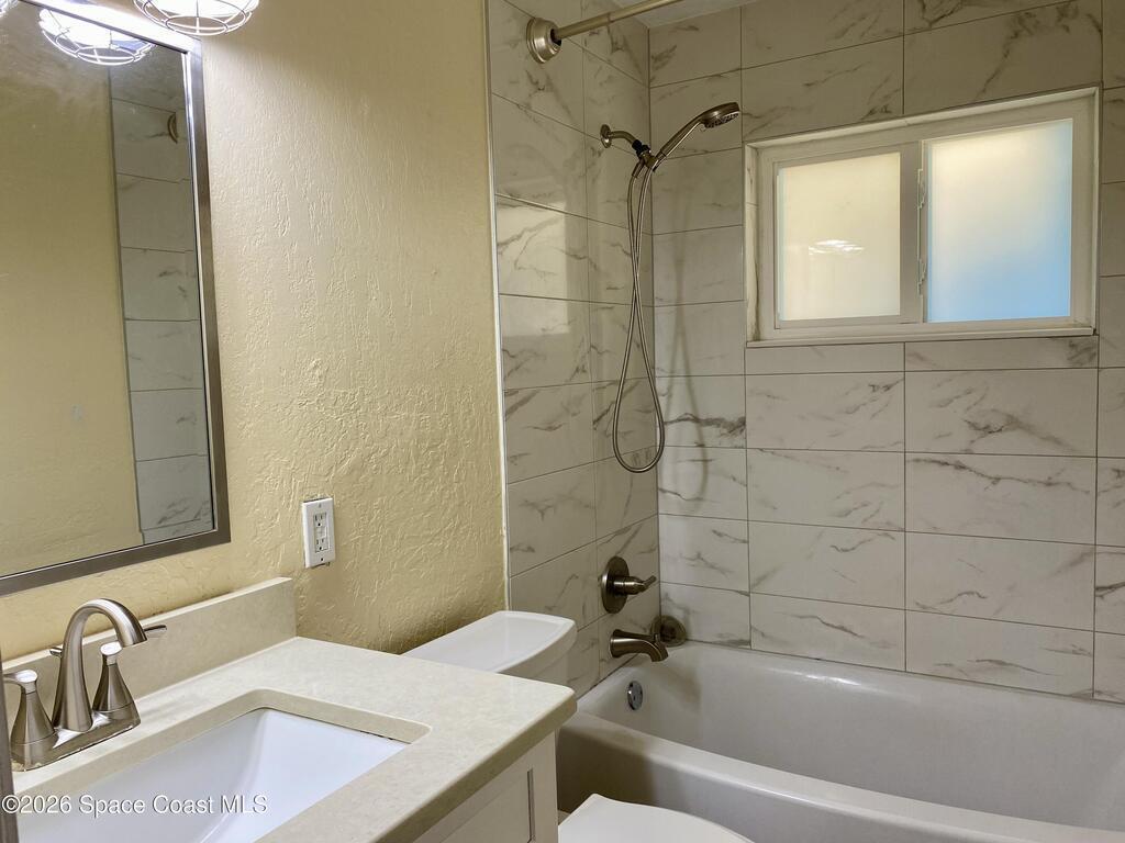 Renovated 4 Bedroom home in the heart of Satellite Beach, with over $100K in upgrades. NO CAST IRON. New PVC pipes, water lines and main line to road. New shaker soft close cabinets in kitchen and both baths, with all new sinks, guest bathtub, tiled shower in Primary, and toilets. New matching floor tile throughout the home. New ceiling fans with lights in each room. New impact windows and doors 2022. New gutters around the house. Extra large driveway with new pavers leading to 2 car garage. Screened in back porch with additional outside patio with new pavers overlooking large fenced in backyard. Sprinkler system on well. Water heater 2021. Roof 2018. Back Porch roof 2021. Painted inside and out 2022. AC 2017. Plantation Shutters throughout. Fruit trees include mango, Barbados cherry, marengo, peanut butter tree, olive tree, coconut palm, fig tree. Only a half mile to the beach. Close to shopping and schools. Home is owned by a Licensed Real Estate Broker.
