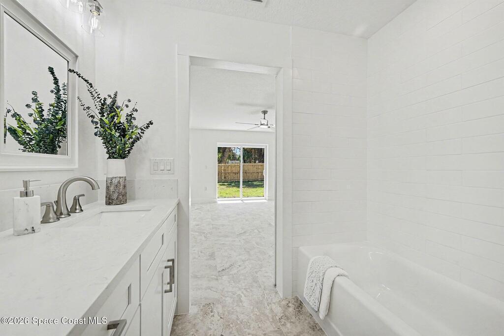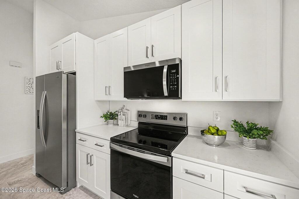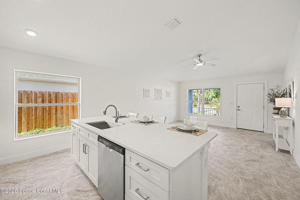 Discover your ideal living space in this new construction, MOVE-IN- READY home, meticulously designed for maximum comfort and convenience. This residence features 3 elegantly appointed bedrooms, 2 stylish bathrooms, and a practical 1-car garage. Each detail has been thoughtfully considered, from the tile flooring that extends throughout the home to the contemporary lighting and cabinetry. The primary suite has sliding glass doors leading to a covered back patio, a spacious walk-in closet, and a private en-suite bathroom for enhanced privacy. The kitchen is a standout, featuring white shaker cabinets with soft-close doors and drawers, quartz countertops, and stainless steel Whirlpool appliances. Experience the added security and energy efficiency of impact windows throughout the home. Additional highlights include the epoxy-coated garage floor, a private fenced backyard, and an efficient irrigation system. As an added incentive, the seller is offering $5, 000 towards buyers closing cost
