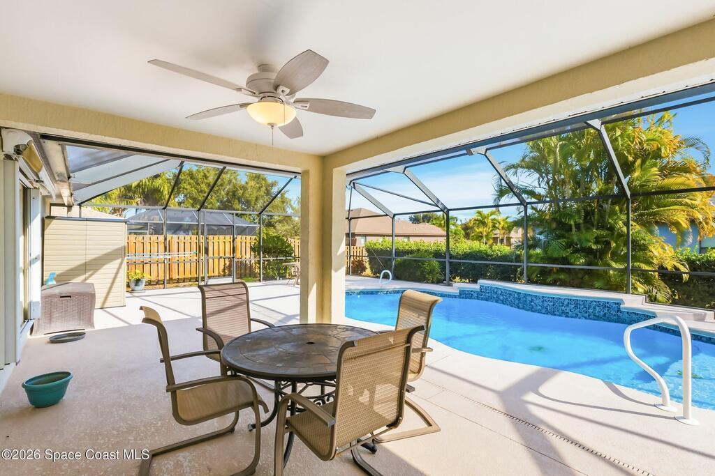 🌴 Perfectly maintained and extensively updated, concrete block, one-story West Melbourne home. Quality construction, modern upgrades, and exceptional convenience. 👙 Designed for effortless Florida living, the screened solar-heated pool, expansive lanai and summer kitchen are perfect for entertaining or unwinding year-round. Fenced backyard adds privacy, while the 2 car garage provides functionality. Luxury tile flooring throughout, granite countertops in the kitchen & primary bath, . Major system upgrades including 200 amp electrical, Generac whole-house generator, Accordion hurricane shutters, a 2020 roof, 2024 HVAC & 2024 pool resurfacing. Photovoltaic solar with $52/month electric bills. Gorgeous, manicured landscaping reflects true pride of ownership. 📍 Located in a sidewalk-safe neighborhood within walking distance to Melbourne Square Mall, Planet Fitness, Barnes & Noble, restaurants, and more. 5-10 Minutes to the beach, Melbourne International Airport, I-95, and US-1.
