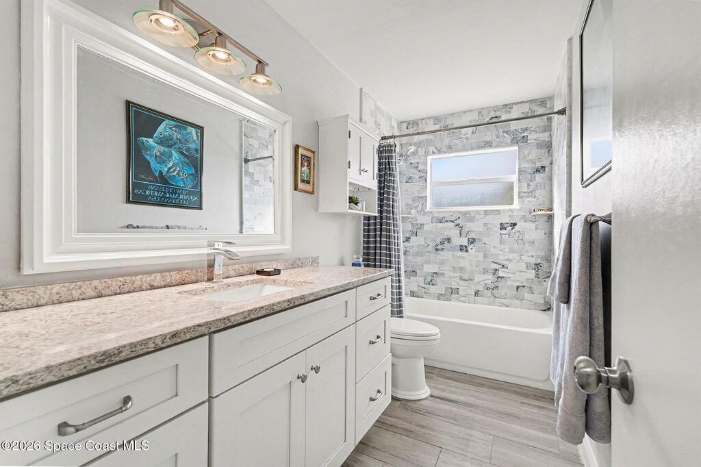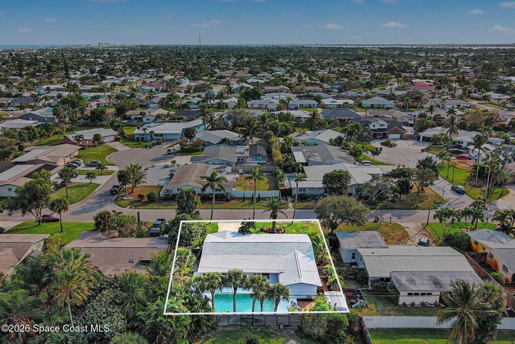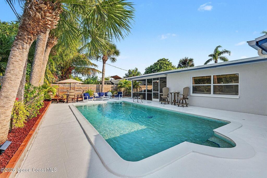 This Satellite Beach stunner doesn't just check all the boxes- it redefines the list. TURNKEY with 3 large beds, 2 full baths & tons of living space its chock full of major upgrades: Newer roof, newer 4-ton A/C, new plumbing NO CAST IRON, new electrical, new windows, new wood look tile floors, new garage door, remodeled baths & kitchen. The chefs dream kitchen boasts quartz counters, modern backsplash & finishes that blend luxury & style w everyday function. The primary en-suite has a huge walk-in closet & also opens directly to the oversized pool & fully fenced backyard paradise for easy indoor/outdoor flow. There is also a large screened in patio to enjoy the ocean breezes. Solid concrete block construction- This home is your private, tropical retreat- quiet, peaceful & simply unforgettable. With shopping close by, A rated schools & everlasting ways to live your best life making every day feel like a vacation.