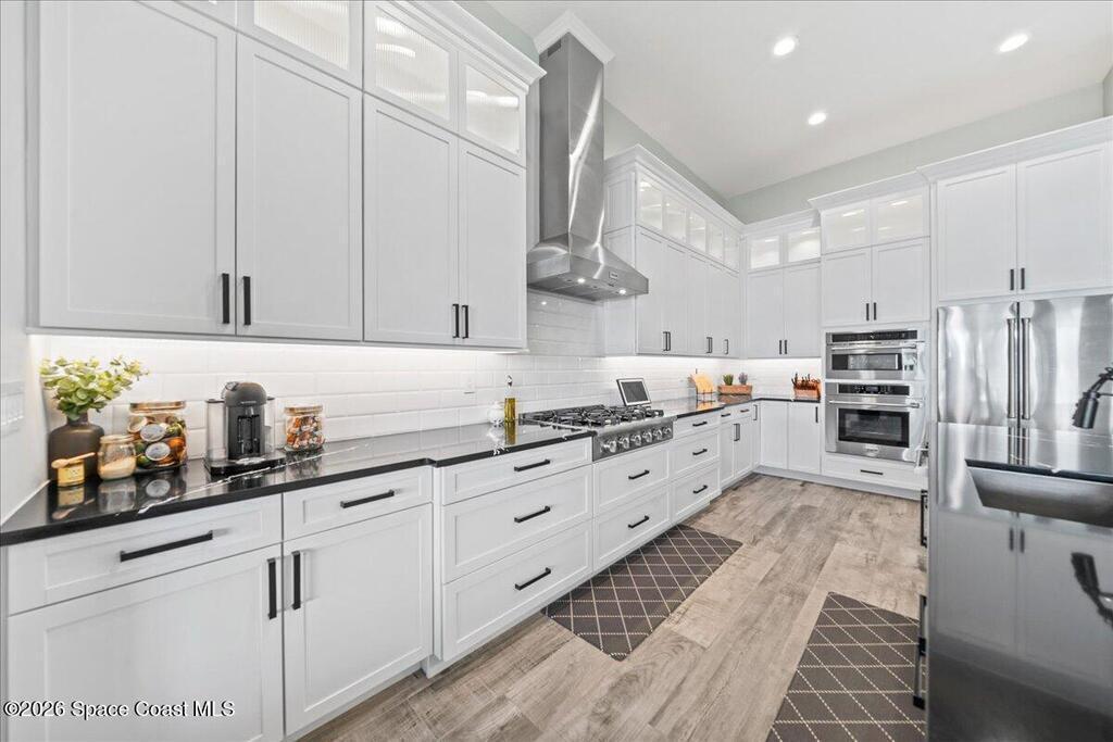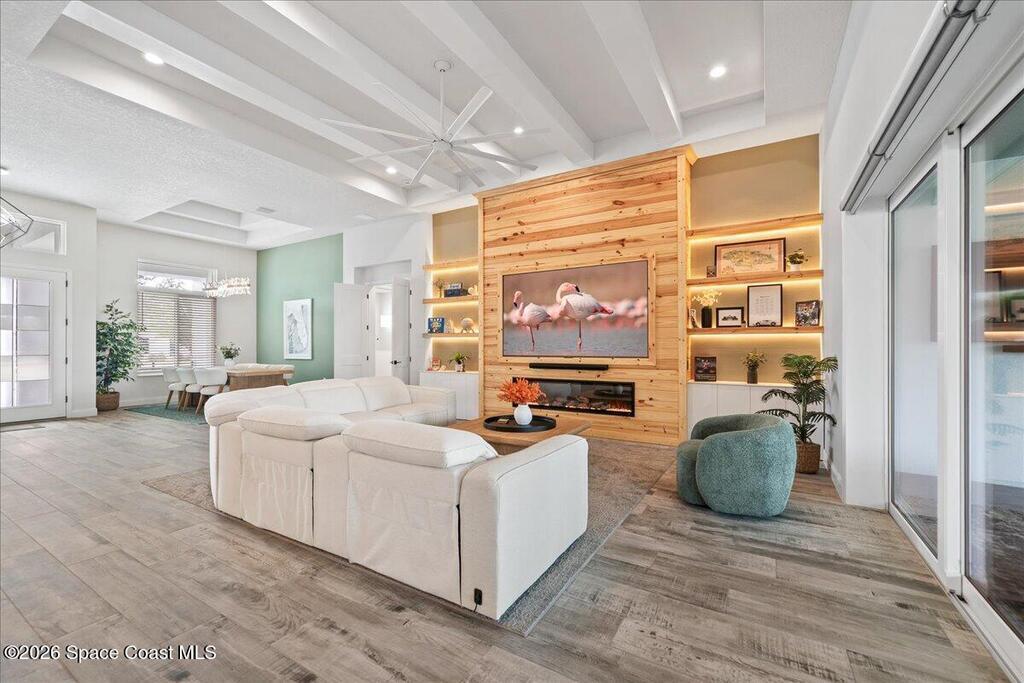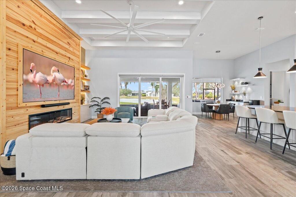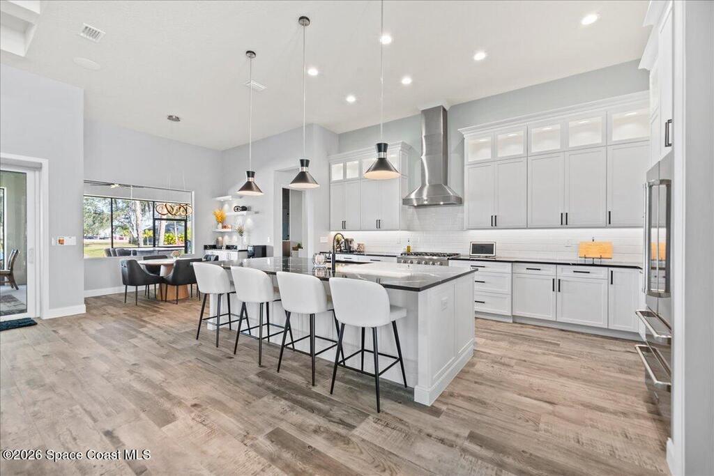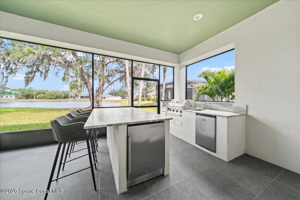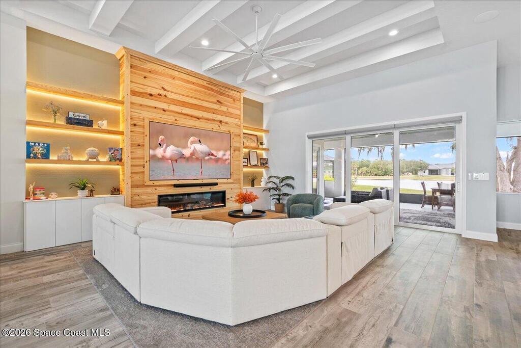 This modern lakefront luxury home offers 3642 sf, PLUS - 1107sf unfinished BONUS ROOM upstairs! While this 2024 home sits on one of the largest lots (.47), it delivers an elevated design with water views that feel well-planned from the beginning. This home flaunts an open-concept interior, ''Brillant'' custom lights, Sonos speaker system, custom closets, impact-rated windows, Flex Room-85'' TCL flat screen w/ custom cabinetry. The living room makes a bold impression with coffered ceilings, massive custom-built lighted entertainment center, electric fireplace & 98'' TCL TV! The high-end Chef's kitchen boasts THOR SS appliances, dual ovens, lighted cabinetry, butler pantry, oversized island & more; matched by a full summer Kitchen outside with a Jett-equipped Spa overlooking the water. Additional highlights: Custom closets, Impact-rated windows-doors, metal roof, wood tile floors. Stop by today! Close to Orlando Airport, Amusement Parks, Costco, Shopping, Restaurants and more...