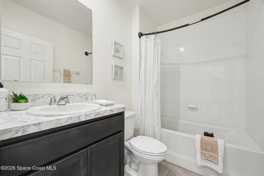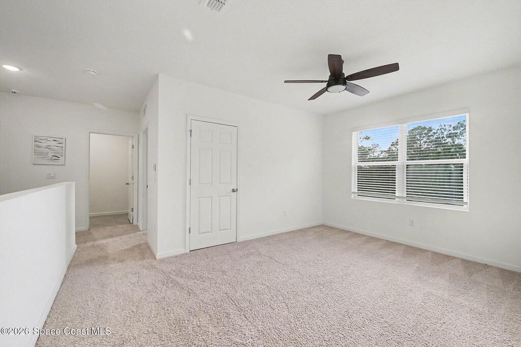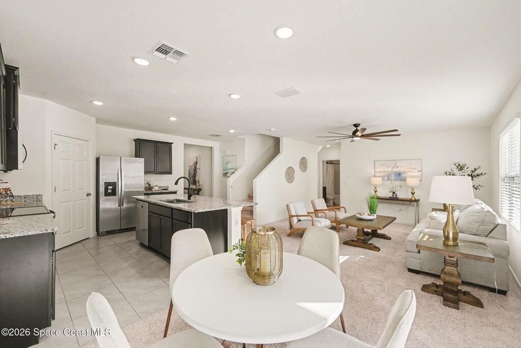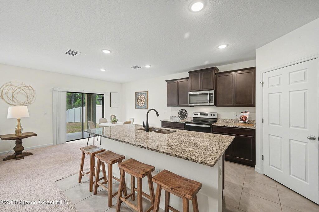 This spacious 5-bedroom, 3-bath, two-story contemporary home offers room to grow and flexible living spaces throughout. A versatile flex room on the first floor can serve as a home office, playroom, formal dining area, or secondary living space. The open floor plan features a dedicated dining area, large kitchen island, and stainless steel appliances, perfect for everyday living and entertaining. A first-floor guest suite provides convenience and privacy. Upstairs, the primary suite includes a walk-in shower and double sinks, along with three additional bedrooms that share a hall bath, a large bonus room, and a second-floor laundry room. Enjoy a fully fenced backyard with preserve views from the patio. Seller-owned solar panels add efficiency. Major updates include roof (2023), HVAC (2023), water heater (2023), and solar panels (2024). Community amenities include a pool, playground, sidewalks, and walking trails. Plenty of space to stretch out and make this home your own.