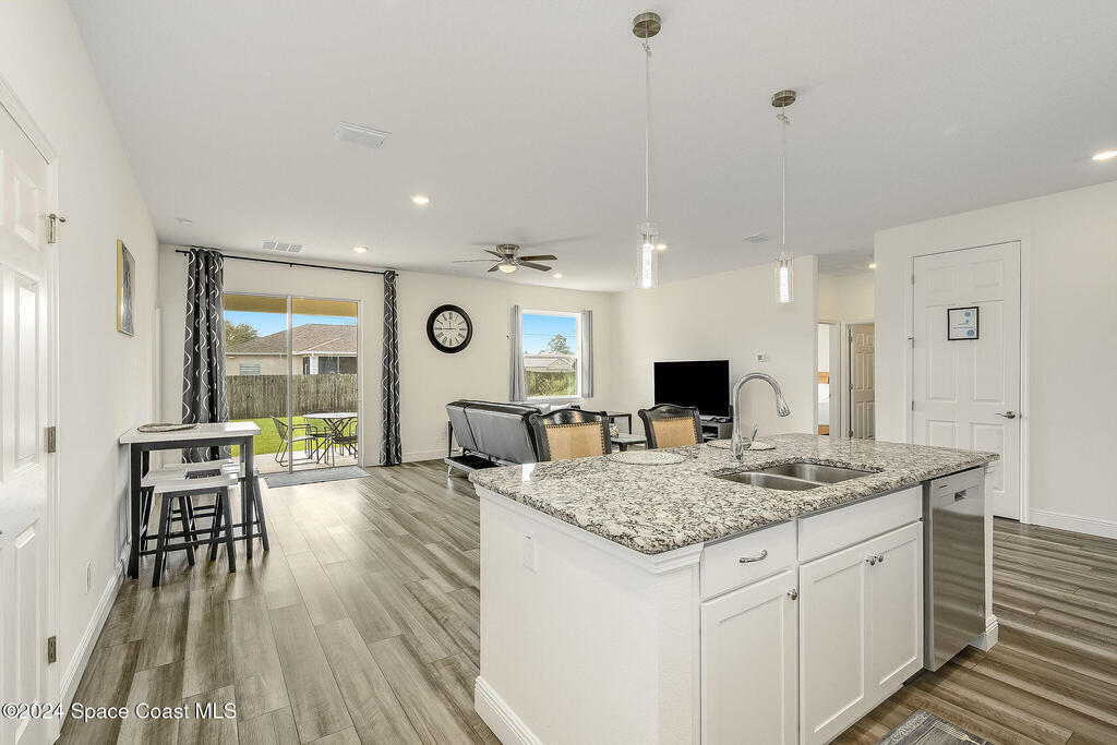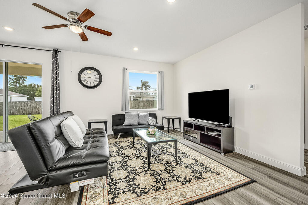 NO HOA! Discover the perfect blend of comfort and functionality in this meticulously maintained home, designed with an inviting open floor plan. Step into the large Owner's Suite, complete with a massive walk-in closet and spacious bathroom. A versatile flex room / home office and dedicated dining area add to the spacious feel. The kitchen shines with abundant cabinet storage, pantry, stainless steel appliances, and a prep-friendly space. Durable vinyl flooring in living areas and cozy carpet in bedrooms make every step feel just right. Built with concrete block construction, this home offers city water, storm panels, gutters and a solar attic fan for added efficiency. Enjoy the covered front and rear porches, plus a spacious backyard, perfect for outdoor gatherings. This home combines practicality and charm--ready to welcome its next owners!