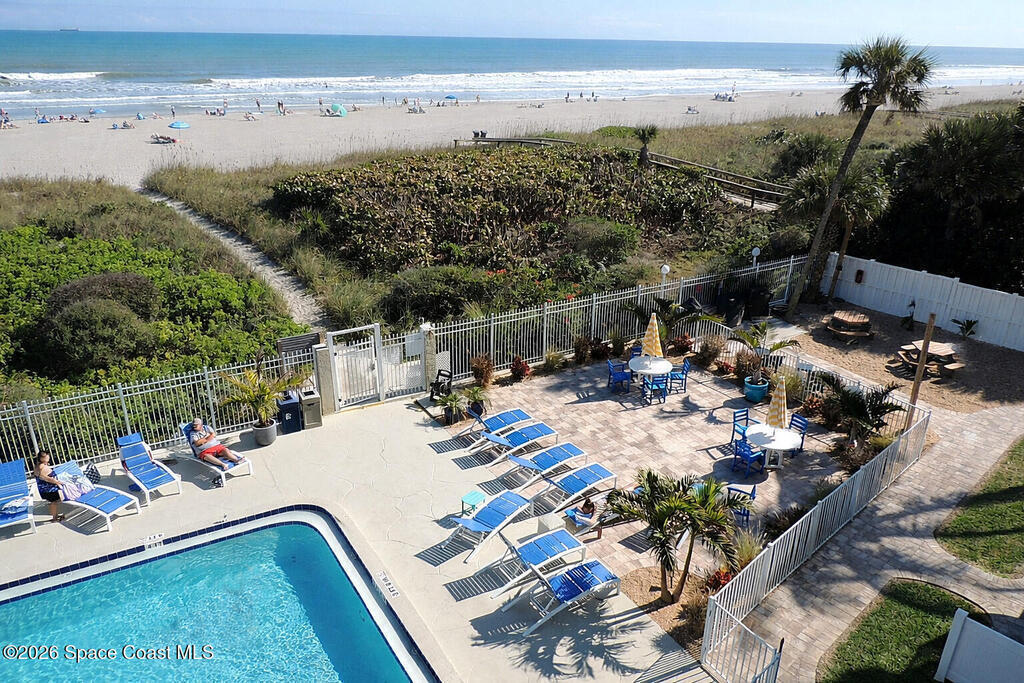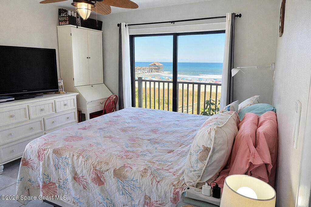 Fantastic views and a Perfect Investment opportunity with no rental restrictions! This direct 4th floor oceanfront corner unit with incredible potential is located just steps to the world-famous Cocoa Beach Pier. This updated 2 bedrooms and 2 baths condo has tile throughout and features an in-unit laundry. Be mesmerized by the beautiful vistas from every room with 6 ft windows in both bedrooms that each have stunning views of the ocean. The condo building is well kept and building inspections have been completed with no scheduled assessments. The building features an amazing rooftop terrace where you and your guests can enjoy unmatched views of the ocean, the river, the Pier, the Port and all the launches from the Space Center. After a long day at the beach, you can relax in the sparkling pool, sit under the sun shade or enjoy dinner fresh off the grill in the poolside Bar-B-Q area. This remarkable income producing condo is waiting for you, so don't miss out.