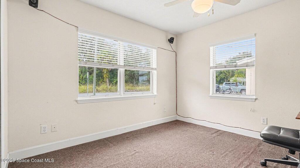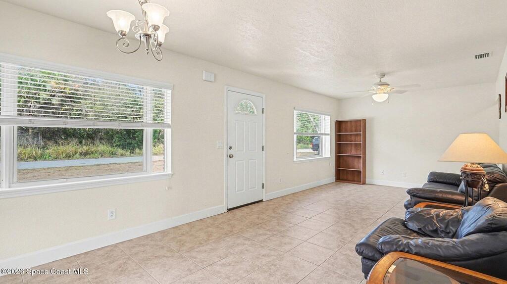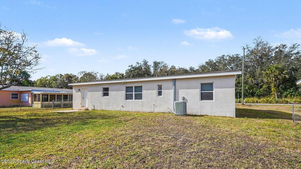 In the heart of W. Melbourne, this charming home offers convenience and tranquility. Minutes from I-95, commuting throughout Brevard or traveling to OIA is a breeze, shopping, dining, medical facilities, & everyday necessities are all close by. Tucked away on a quiet dead-end street with a wooded area across the road, provides peaceful living with no through traffic. The former carport has been enclosed, adding valuable square footage and versatile living space with its own entry and exit access. Inside, you'll also find an indoor laundry room with additional exterior access for added functionality. The large backyard is mostly fenced, offering plenty of room to relax, entertain, or garden. Major renovations completed in 2009 included all plumbing, electrical, insulation, double-pane windows, window treatments, HVAC and ductwork, kitchen cabinetry, appliances, bathroom updates, and tile throughout the main area. The roof was replaced in 2020, and ceiling fans in every room.