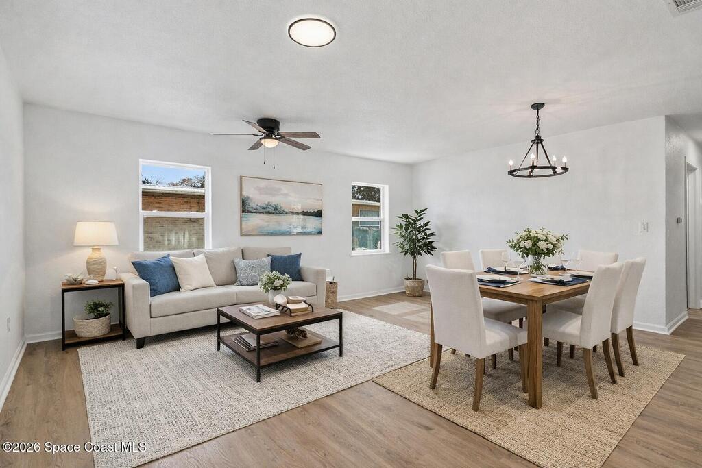 Welcome to 604 Wisteria a beautifully fully renovated and permitted home offering modern comfort in a prime central location close to everything. This move-in-ready property has been thoughtfully updated from top to bottom, delivering quality craftsmanship and peace of mind.The interior features a bright, open layout with fresh finishes throughout, creating a clean and inviting atmosphere. Updates include modern flooring, updated kitchen and bathrooms, fresh interior and exterior paint, and upgraded systems, all completed with proper City of Melbourne permits, ensuring the work meets current standards.The kitchen is designed for both style and functionality, offering contemporary cabinetry, quality countertops, and ample space for everyday living and entertaining. Bedrooms are well-proportioned and filled with natural light, while the renovated bathrooms showcase modern fixtures and finishes.Ideally located just minutes from shopping, dining, schools, major roads!!