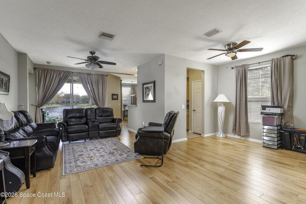 NO STAIRS -- just easy living! This FIRST FLOOR END-UNIT condo offers serene lake views and a split-bedroom layout for maximum privacy. Move-in ready and awaiting your personal touch, the flexible bonus room easily adapts as a home office, den, or guest space. Enjoy a functional layout where prep, dining and gathering connect seamlessly. Breakfast tastes better in the sunlit nook overlooking the lake. The spacious primary ensuite features a large walk-in closet, double vanity and tiled shower. Sip, unwind, and enjoy lake views from your breezy screened lanai. Additional features include a 2yr-old A/C, indoor laundry and a single-car garage. HOA covers exterior maintenance, roof, landscaping, building insurance and access to the sparkling community pool. Ideally located near Suntree Country Club, The Avenue Viera, Brevard Zoo, beaches, nature trails, I-95 and major employers of the Florida Space Coast Launch Ecosystem -- perfect for retirees and professionals alike.