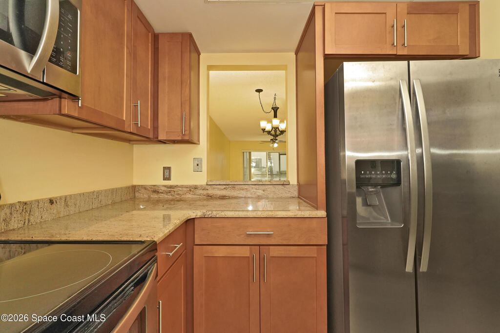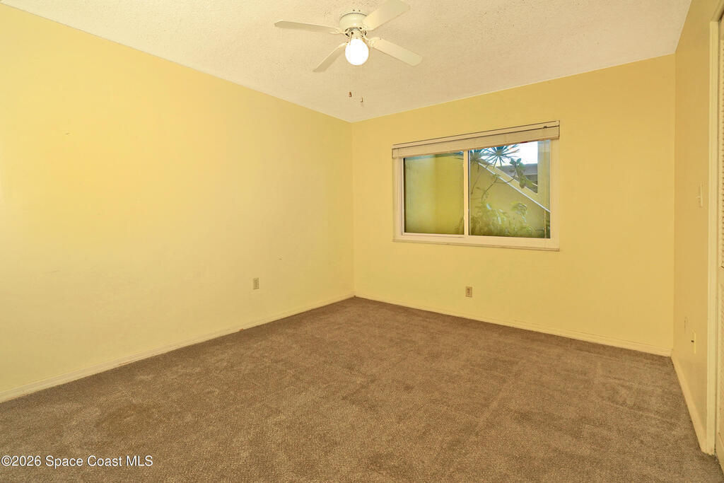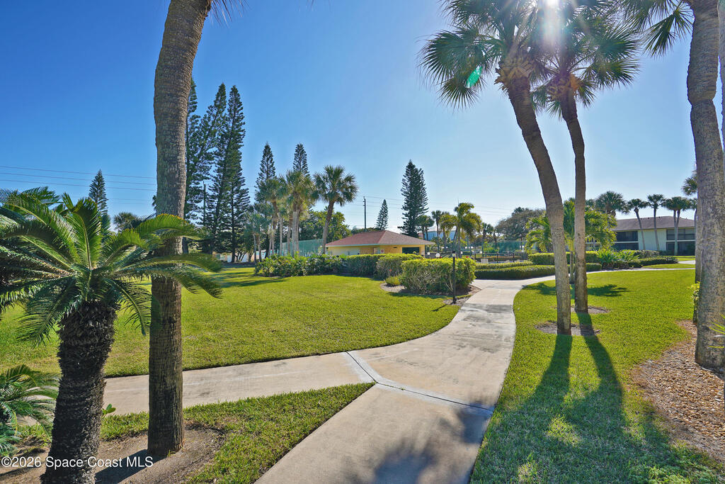Fantastic GROUND FLOOR, 2 bedroom, 2 bath, Cocoa Beach unit has an open plan for you and your family. The living room is large with wide sliders with vertical blinds and most of the rooms have ceiling fans. The master bedroom has a great view out the vertical blind covered sliders looking into the screened patio that has a storage closet at one end. The kitchen has wide granite counters and stainless electric appliances with a pass-thru to the dining area. There is a large laundry closet by the front bedroom and bathroom. It is a pleasant walk to the community pool and tennis court. This unit is close to schools, churches, restaurants and shopping, just a short 3 block walk to the beach where you will have great views of the local rocket launches, 7.5 miles to Port Canaveral and the Cruise Ships and 50 miles to the Orlando airport