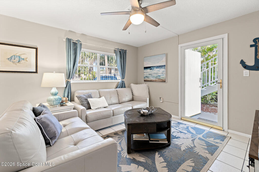 This sun-filled ground-floor corner condo is perfectly located just steps from the ocean! Ideal as a weekend getaway, full-time residence, or investment, this 1-Bed, 1-Bath unit combines coastal charm with practical comfort. Inside, you'll find an open floor plan featuring a sunny living area, well-equipped kitchen with newer appliances, and a comfortable bedroom--fully furnished with thoughtfully updated furnishings and move-in ready. Start your day with coffee on the deck or grab your towel and stroll to the beach in minutes. When you're not enjoying the sand and surf, explore Port Canaveral's dining, entertainment, and cruise terminals nearby. Recent improvements include the current pool renovation and updated interior finishes. Ground-floor convenience means no stairs and easy beach access. Whether you're seeking a personal coastal retreat or a turnkey rental with excellent income history, this property delivers. Easy, low-maintenance living just one block from the ocean awaits!
