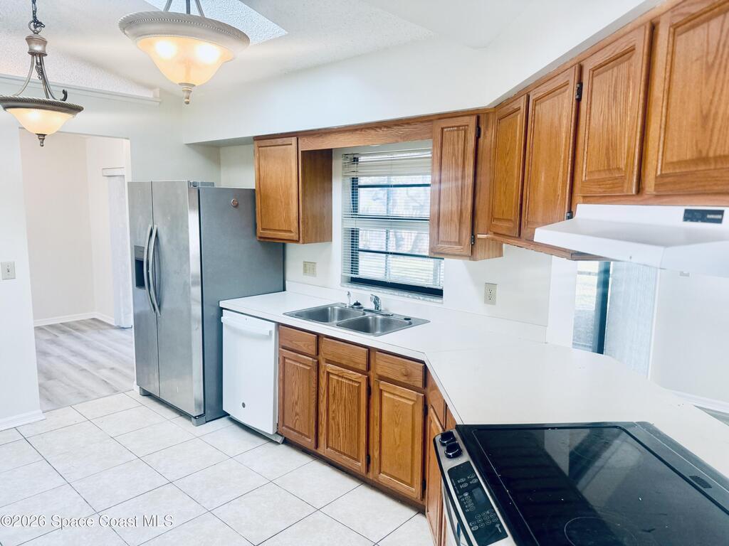 Welcome to this spacious single-family home featuring a desirable split floor plan and two separate living areas, including a large living/dining combo perfect for entertaining. This home offers 3 bedrooms, 2 full bathrooms, and ceiling fans throughout for added comfort.The kitchen comes equipped with a refrigerator, dishwasher, and stove/oven, and features tile flooring. The home has been updated with new vinyl plank flooring throughout and has been freshly painted, giving the interior a clean and modern feel. Both bathrooms include tile flooring for easy upkeep, with upgraded bathroom tiles and a modern tub enhancing the overall look and feel. The master suite offers his-and-hers closets and a private bath with double sinks, a jetted bathtub, and a separate shower. A washer and dryer are included for your convenience.Additional perks include an extra storage room in the garage, a private partially fenced yard, and a screened patio accessed from the main living area. This