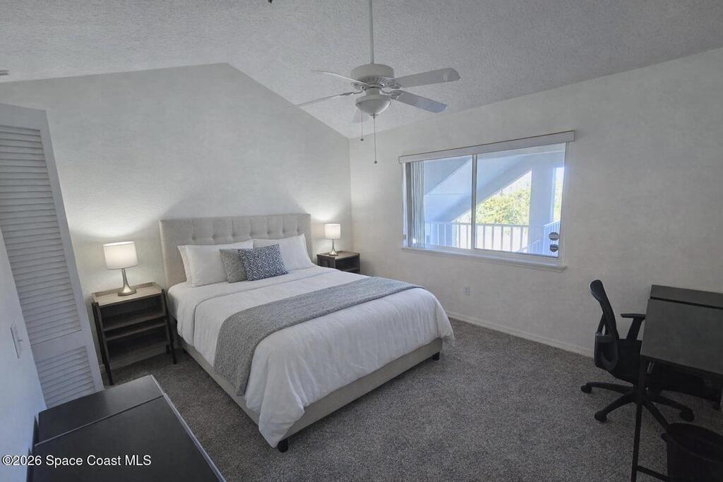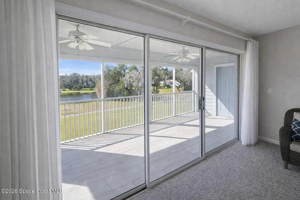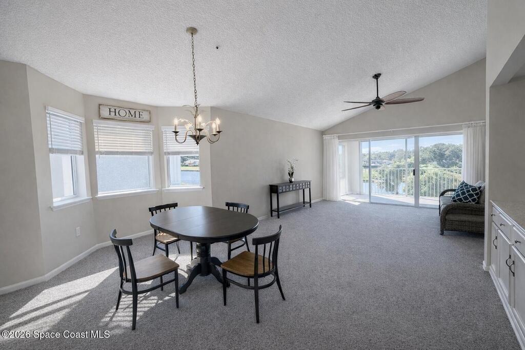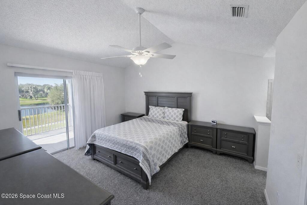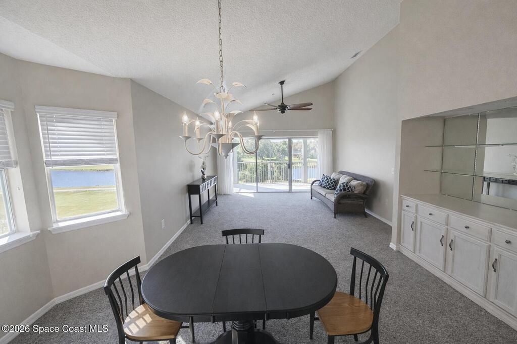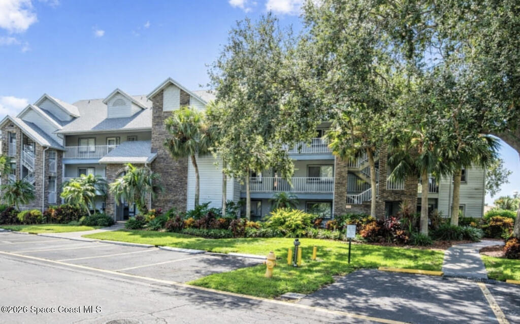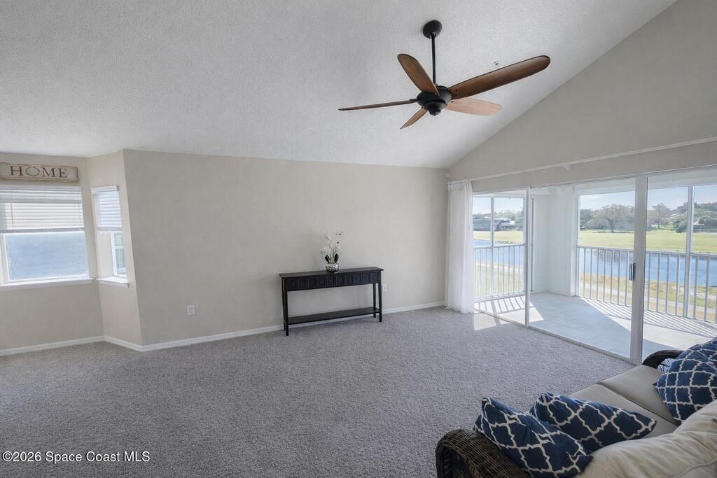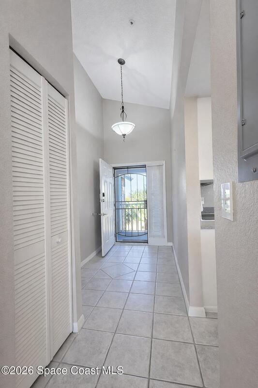 Very nice top-floor, end-unit condo--fully furnished--with incredible lake views overlooking La Cita Golf Club's 17th hole. Light and bright with soaring vaulted/cathedral ceilings and an open floor plan, this beautiful bright home is perfect for relaxing or entertaining. Enjoy sweeping views from the private screened balcony with access from both the living area and the primary bedroom. The primary suite features a private bath, walk-in closet, and vanity area, while the guest bedroom offers its own ensuite bath. The kitchen includes plenty of cabinet storage, a full-size pantry, and a convenient laundry closet with newer washer. Additional perks include elevator access, a brand-new roof (2025), and beautifully maintained grounds--plus you're centrally located near shopping, beaches, rocket launches, and I-95. Don't delay--come see today!