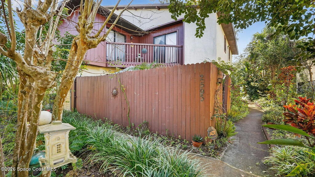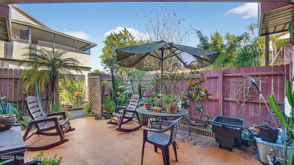 There's No Place Like Home! Step through a charming private courtyard entrance and into a home that's truly move-in ready--being sold fully furnished, including washer and dryer. Located in Oak Tree Gardens, this 2-bedroom, 2.5-bath townhouse offers 1, 247 sq ft of relaxed, low-maintenance living. The main level is ideal for everyday life and entertaining, featuring an open flow, convenient half bath. Upstairs, both bedrooms provide privacy, each with its own full bathroom, and in-unit laundry. Both bedrooms open to a private balcony, perfect for morning coffee or winding down in the evening. Major upgrades add peace of mind, including a recent roof (2023), updated electrical panel, new water heater, and full replumb. Centrally located near shopping, dining, and commuter routes, this furnished Oak Tree Gardens home is ideal for a primary residence, second home, or investment--just bring your suitcase and settle in. Minutes from Space Center, beaches, downtown, I-95 & cruise port.