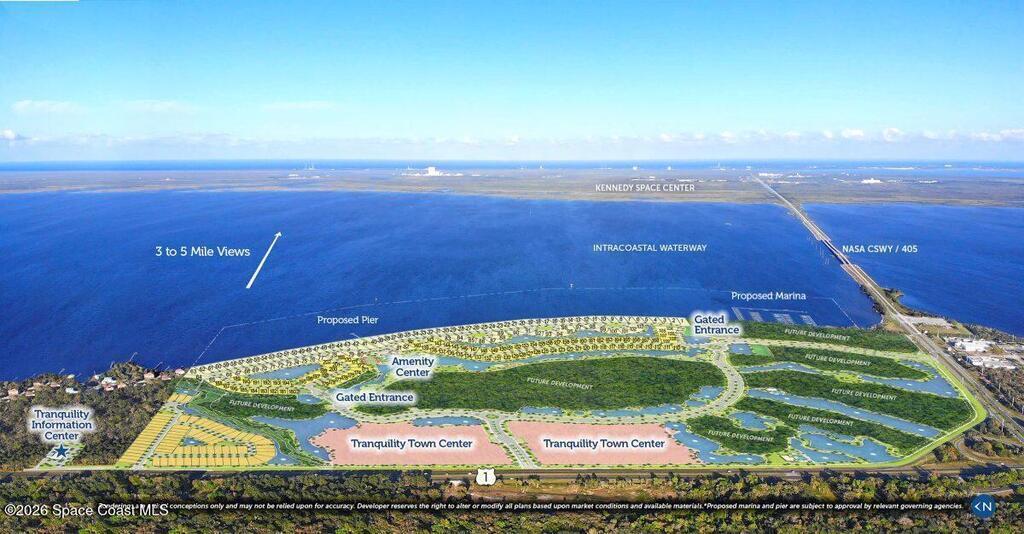 Welcome to an exceptional homesite in a prestigious, gated waterfront community along the Intracoastal Waterway. This is a rare opportunity to build a fully custom residence with your choice of seven premium builders, all within a thoughtfully designed, golf-cart-friendly neighborhood that blends luxury, lifestyle, and location.Enjoy a front-row seat to history with direct river views of the Kennedy Space Center--watch rocket launches light up the sky right from your future home. Resort-style amenities elevate everyday living, including a stunning two-story clubhouse, swimming pool, state-of-the-art fitness center, pickleball and tennis courts, dog park, playground, community pier, and scenic walking trails. A marina and vibrant town center are coming soon, featuring grocery stores, restaurants, and shopping just steps from your door.Community features include natural gas, public water and sewer, and easy access to major roadways.