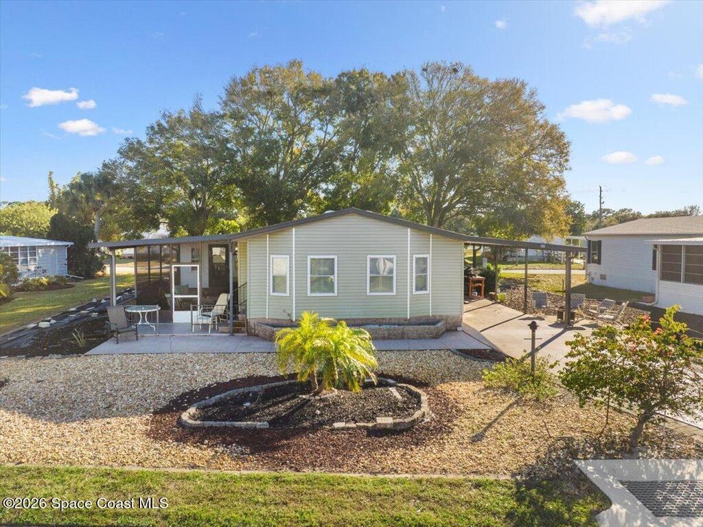 Welcome home to this beautiful 3-bed, 3-bath property tucked away on a quiet dead-end street in the established Tree Section of Barefoot Bay. Situated on an oversized lot, this well-maintained home features an open, inviting layout with an updated kitchen and bathrooms and multiple flexible living spaces. The bright Florida room with a mini-split is perfect for year-round enjoyment, while the screened lanai and covered carport enhance the relaxed Florida lifestyle.Barefoot Bay residents enjoy a 750ft gated private fishing pier, 18-hole executive golf course, heated pools, pickleball, mini golf, and an active clubhouse. Conveniently located near great dining, medical and banking facilities, shopping, and waterfront restaurants, this home is ideal as a full-time residence, seasonal escape, or investment opportunity!
