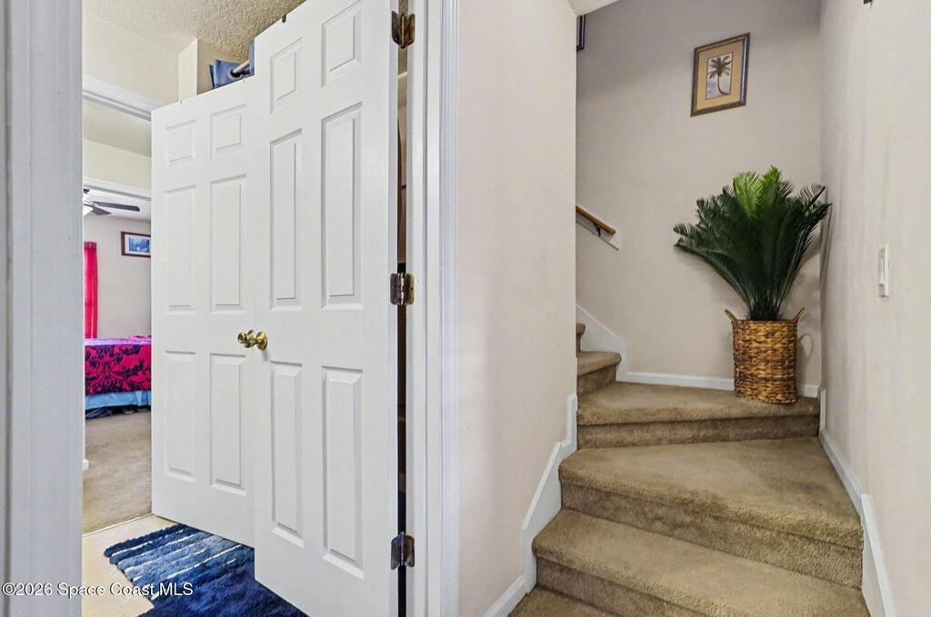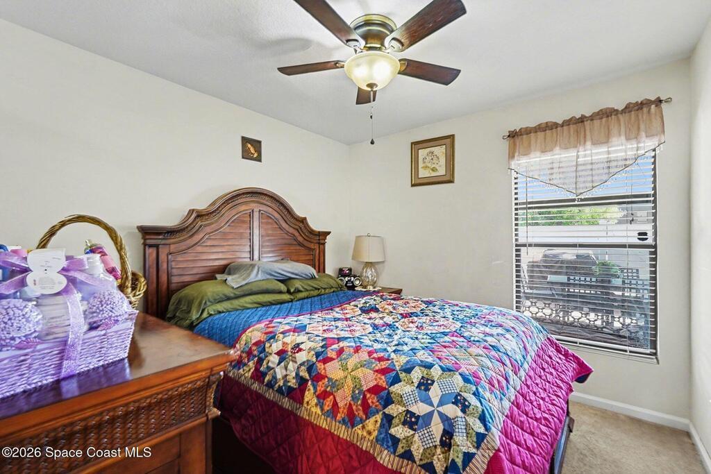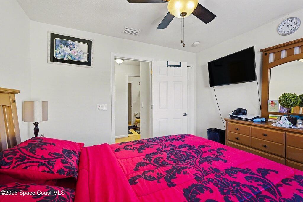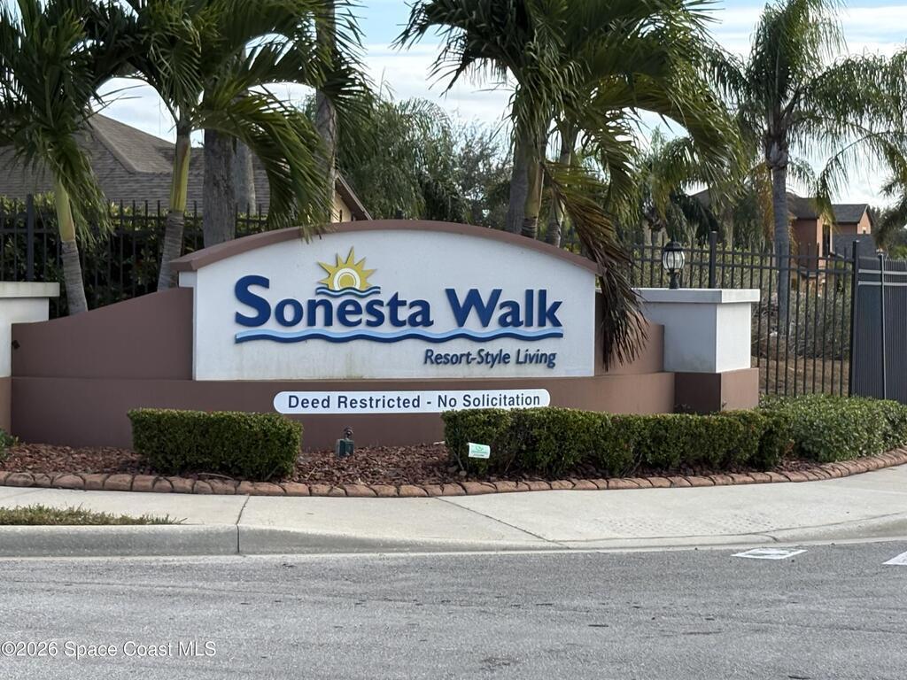 Beautiful townhome in the resort style community of Sonesta Walk. 3-bed, 2-bath, 1-car garage. Entire 2nd floor is the primary suite, providing extra privacy, lots of space and his & her closets. Sit out front or out back, with a screened front porch and a private, fully fenced back porch, with a new roof over it. Detached 1-car garage, with shelving for extra storage, as well as driveway parking. First floor laundry. Brinks security system. Storm shutters. Well maintained home, with a new roof and A/C in 2024. Amenities include a heated pool, hot tub, volleyball, tennis courts, playground, basketball, & walking trails. HOA fee is only $100/month and includes lawn care. Close to shopping, dining, downtown Melbourne and the beach!