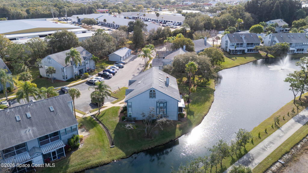 Updated 2 bed/2 bath condo with 1, 133 sq ft in Lake in the Woods, positioned for one of the best lake-and-fountain views in the community. Bright, open living/dining with durable plank-style flooring, neutral paint, and an easy flow to the kitchen and dining area. Clean white kitchen with ample cabinetry, long counters, and newer appliances. Split plan for privacy with walk-in closets and refreshed baths. Bonus sunroom/screened porch with ceiling fan perfect for morning coffee and evening breezes while you watch the fountain. Separate in-unit laundry (washer/dryer included) plus an on-demand tankless water heater for efficient hot water. Monthly HOA covers exterior and grounds maintenance plus cable/internet, water and pest control; membership available for pool, clubhouse, tennis and gym. Convenient Melbourne location near shopping, dining, and quick access to major roads. Schedule your private showing and see why this view stands out.