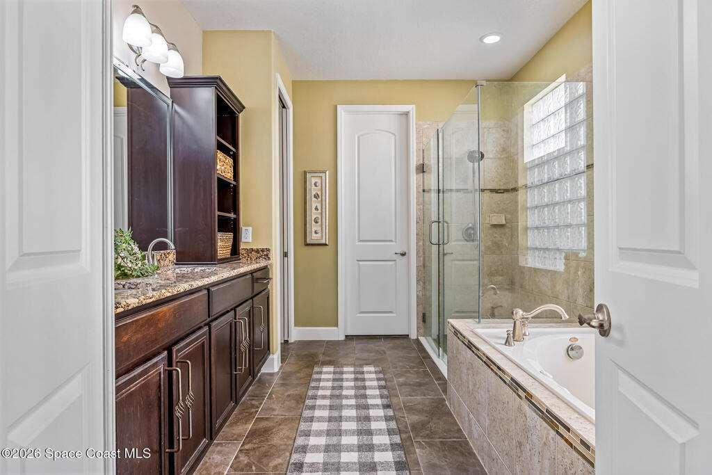 Spacious Camdyn Model | Energy Efficient Massive Floorplan built with quality and longevity in mind, this well-constructed home features a reinforced slab foundation with fiber mesh/ #5 steel for a solid home foundation, wood interior framing for added strength, and high-standard energy efficiency throughout. Enjoy efficient utility costs with the 2023 15-SEER high-efficiency heat-pump A/C system and the durability of a classic barrel tile roof. Welcome to an expansive floor plan offering 4 oversized bedrooms, a dedicated office, and an enormous second-floor loft/landing. The first-floor primary suite is truly a retreat, featuring: Large bedroom with sitting/office area, huge spa-style bathroom w/double sinks, oversized walk-in shower & soaking tub, private toilet room & large walk-in closet. A guest bathroom is also located on the first floor, while upstairs offers a secondary master bedroom, wide hallway foyer, and additional bedrooms served by a large third bathroom with double