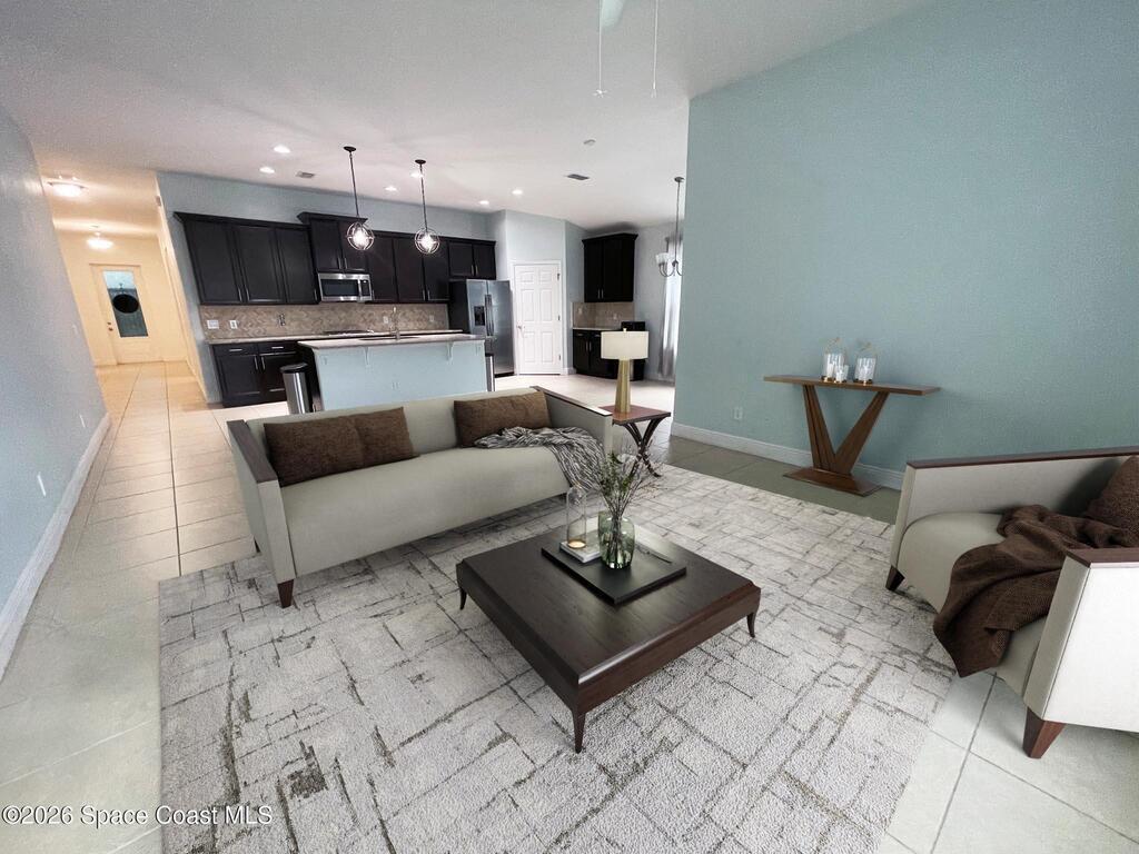 Screened in and cozy entryway brings you into the spacious foyer and open floor plan in this 2017-built concrete block home with high-ceilings. Tile throughout, with soft and lush carpet in spare rooms and vinyl plank flooring throughout master bedroom and master walk-in closet. Open and functionally beautiful kitchen with Island, oven, fridge, overhead microwave, gas stove-top range, dishwasher, pendant lighting, and espresso cabinets with crown-molding. Master Bedroom has newly installed vinyl plank. Privacy Fenced-in backyard. Bathrooms have Listello wall tile/trim and upgraded Master shower. Spacious shelving available in garage, tankless gas water heater, Washer/Dryer, Security System. Internet is included through June 10, 2024! NO SMOKING/OWNER WILL CONSIDER SMALL ANIMALS. Non-refundable Pet Deposit Required