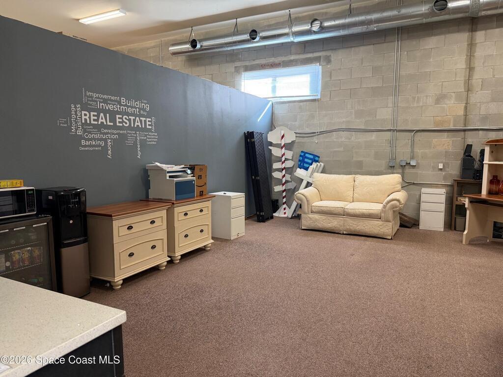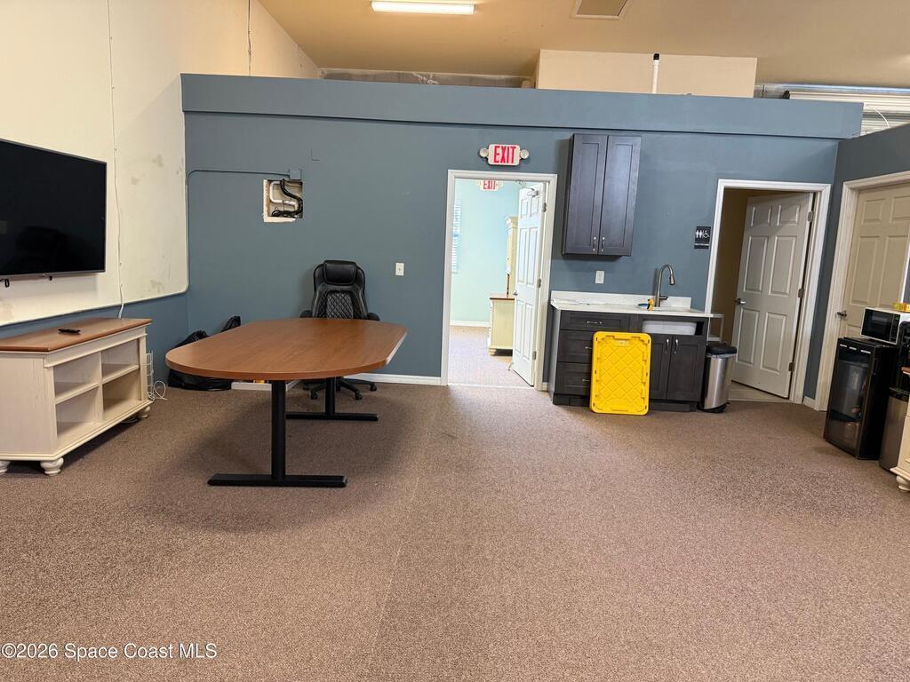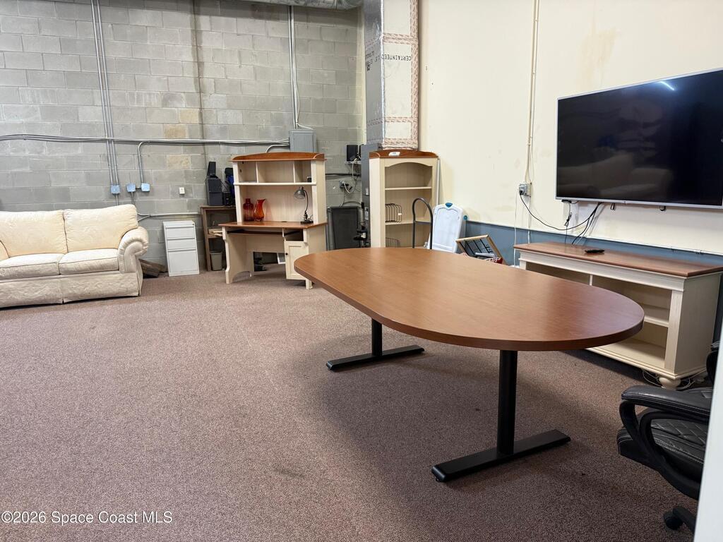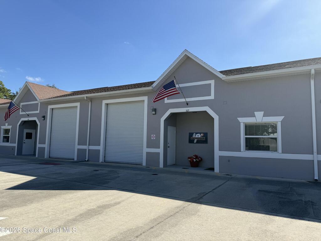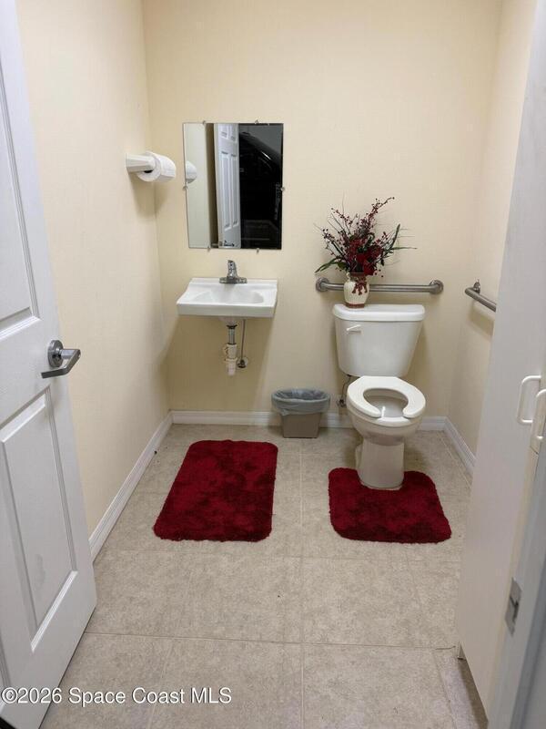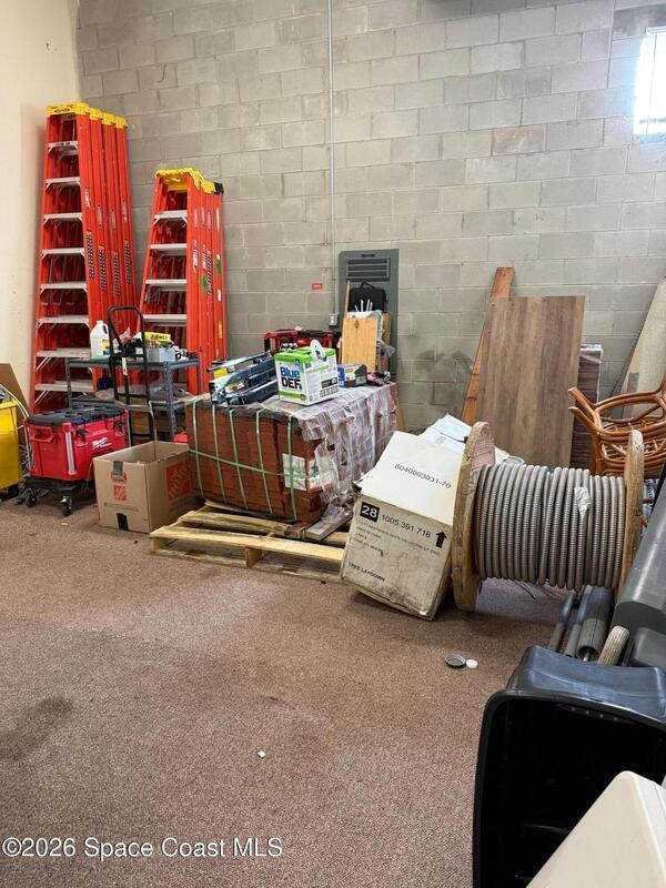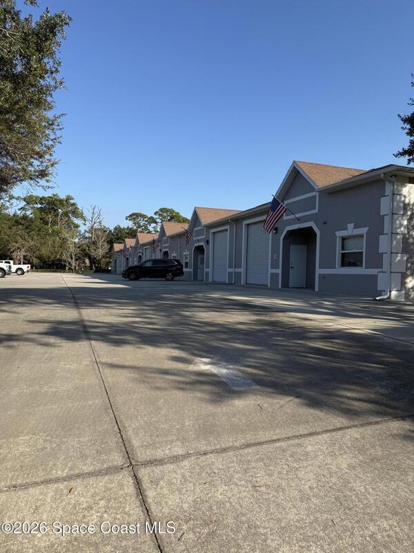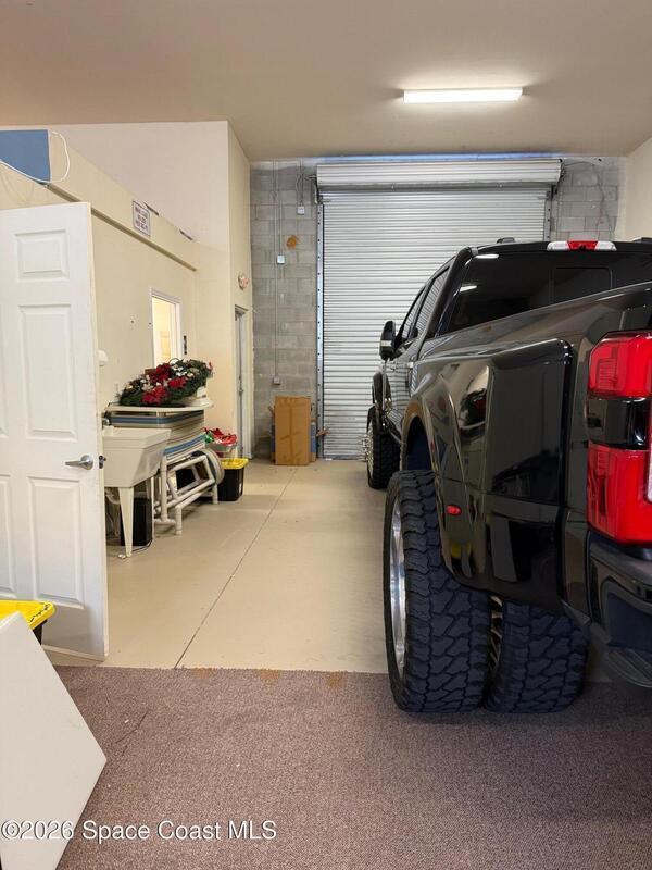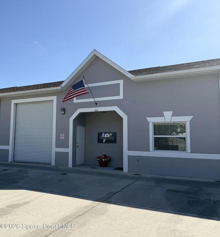 Warehouse office space in prime location, Ideal for business use and great storage space.One half of the building features a garage with 14-foot door and its own private bathroom. This other half consists of office space with two rooms and second Bathroom. This is a must-see property, currently being used as a Real Estate office and Property development company office. Prospective tenants should do due-diligence to find out permittable use with the town of Melbourne.